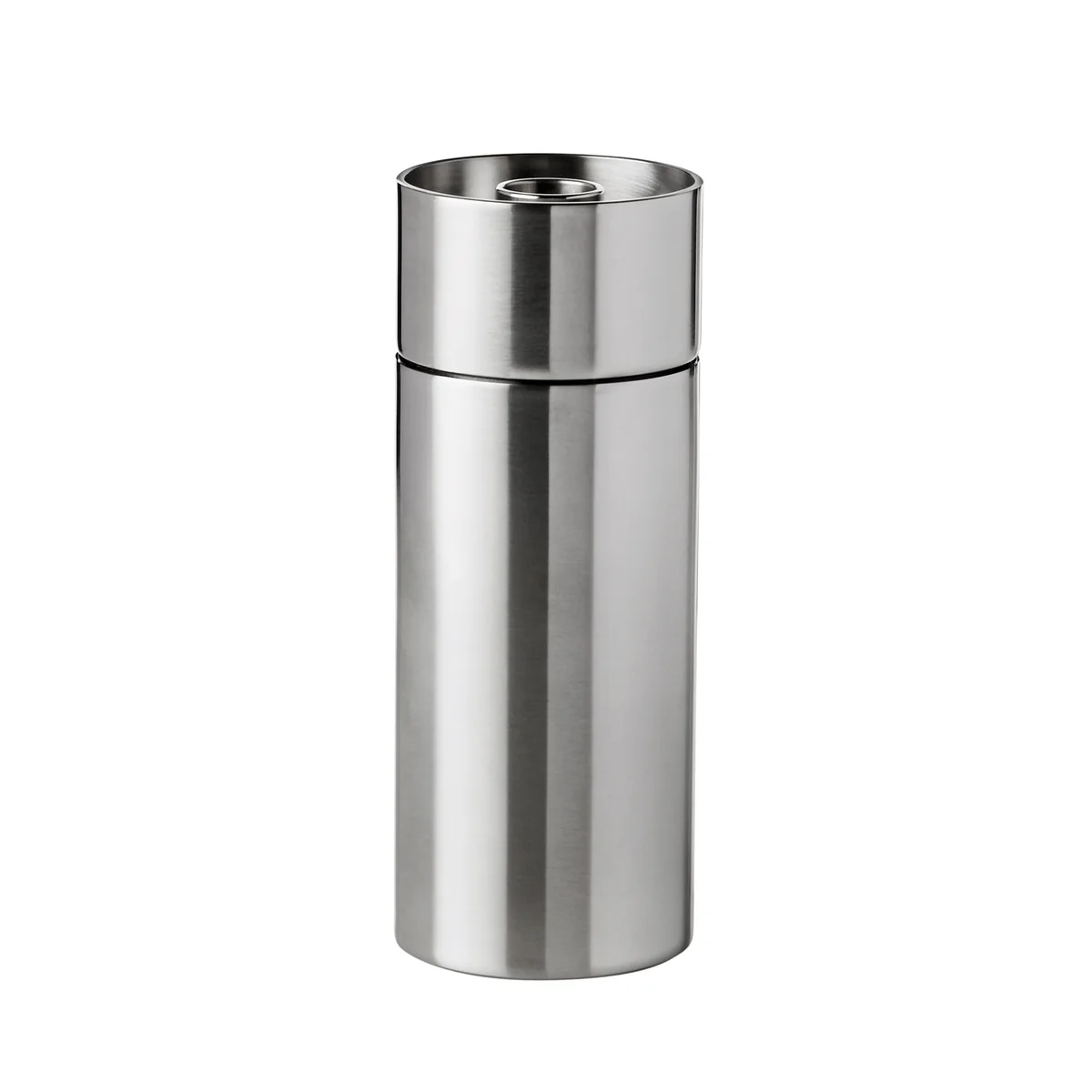 De peper- en zoutmolens uit de Cylinda serie van Stelton zijn gemaakt van mat gepolijst roestvrij staal. Samen met de keramische molen belooft het materiaal een lange levensduur en veel plezier van het product. De pepermolen wordt gekenmerkt door een zwarte stip op de vergrendelingsschroef, de zoutmolen door een witte.
