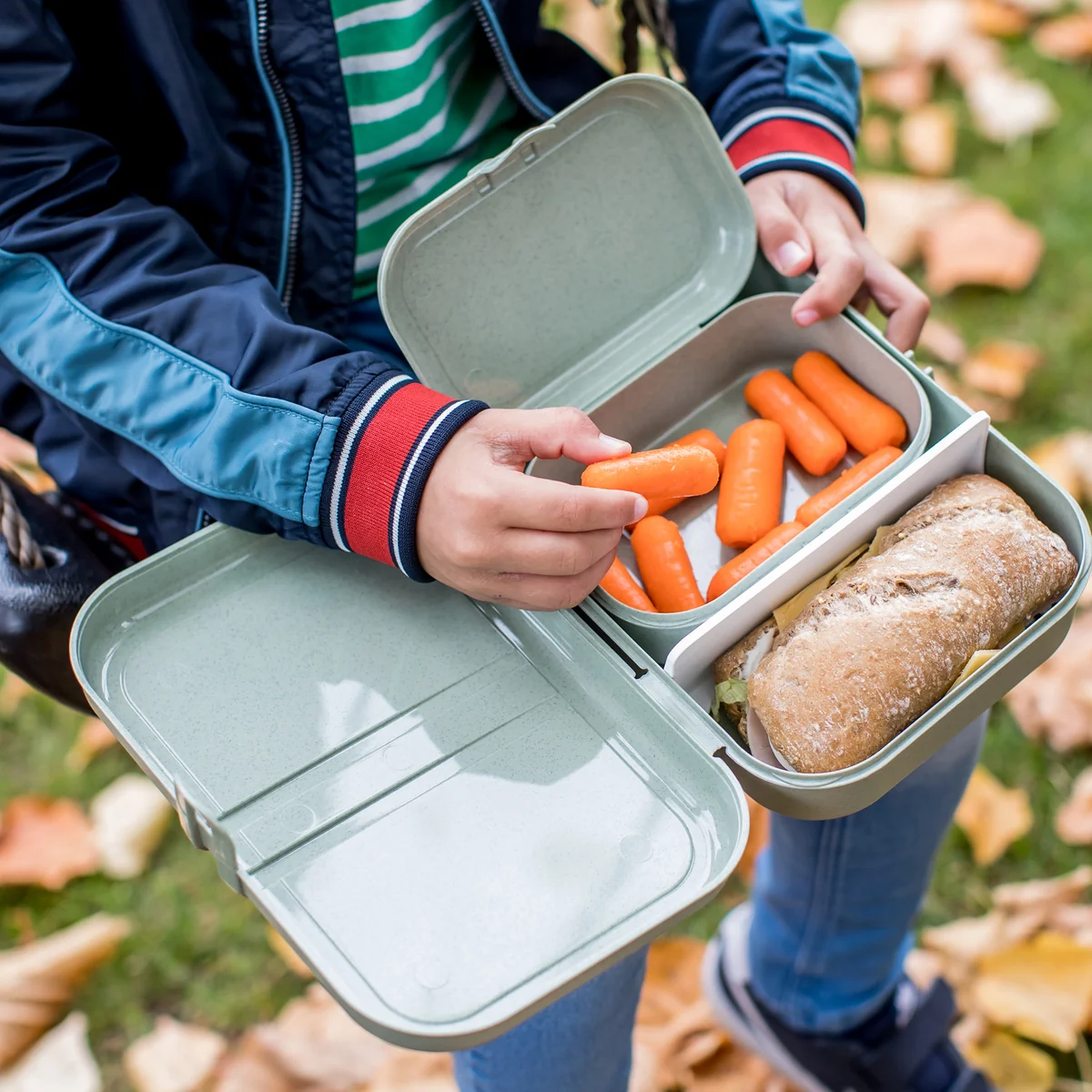 De lunchbox is gemaakt Pascal Lunchbox gemaakt van kunststof of het nieuwe Koziol Organic materiaal met natuurlijke cellulose. Het materiaal is milieuvriendelijk, voedselveilig en 100% recycleerbaar. Het is ook vrij van formaldehyde of BPA. De productie van de lunchbox vindt plaats in Duitsland, dat een actieve vermindering van CO² bevordert door korte transportroutes en het gebruik van groene stroom.