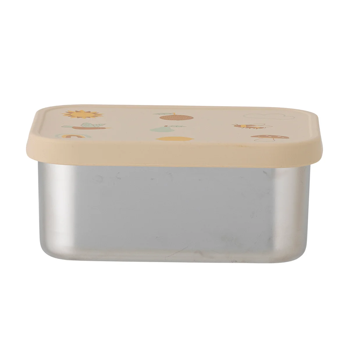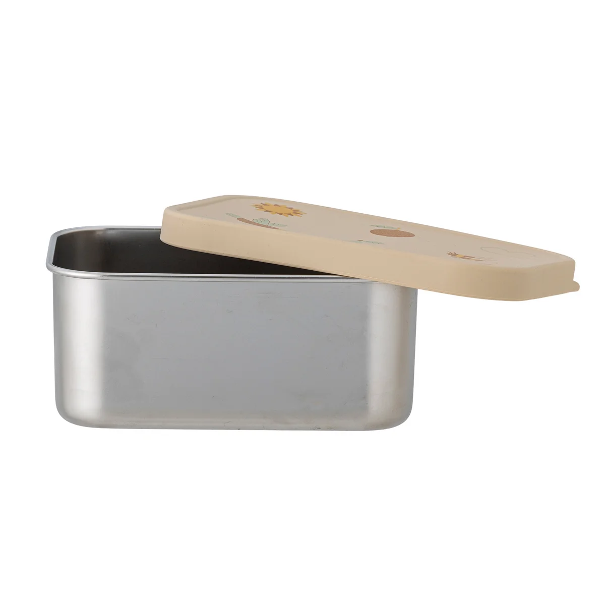 Bloomingville De Agnes lunchbox van MINI is de perfecte metgezel voor kleine avonturiers tijdens de lunch! Het charmante deksel is ontworpen met een vrolijk motief in zachte kleuren op een beige achtergrond. Deze lunchbox combineert speelse verbeelding met de robuuste functionaliteit van roestvrij staal en zorgt voor plezier en betrouwbaarheid bij elke maaltijd.