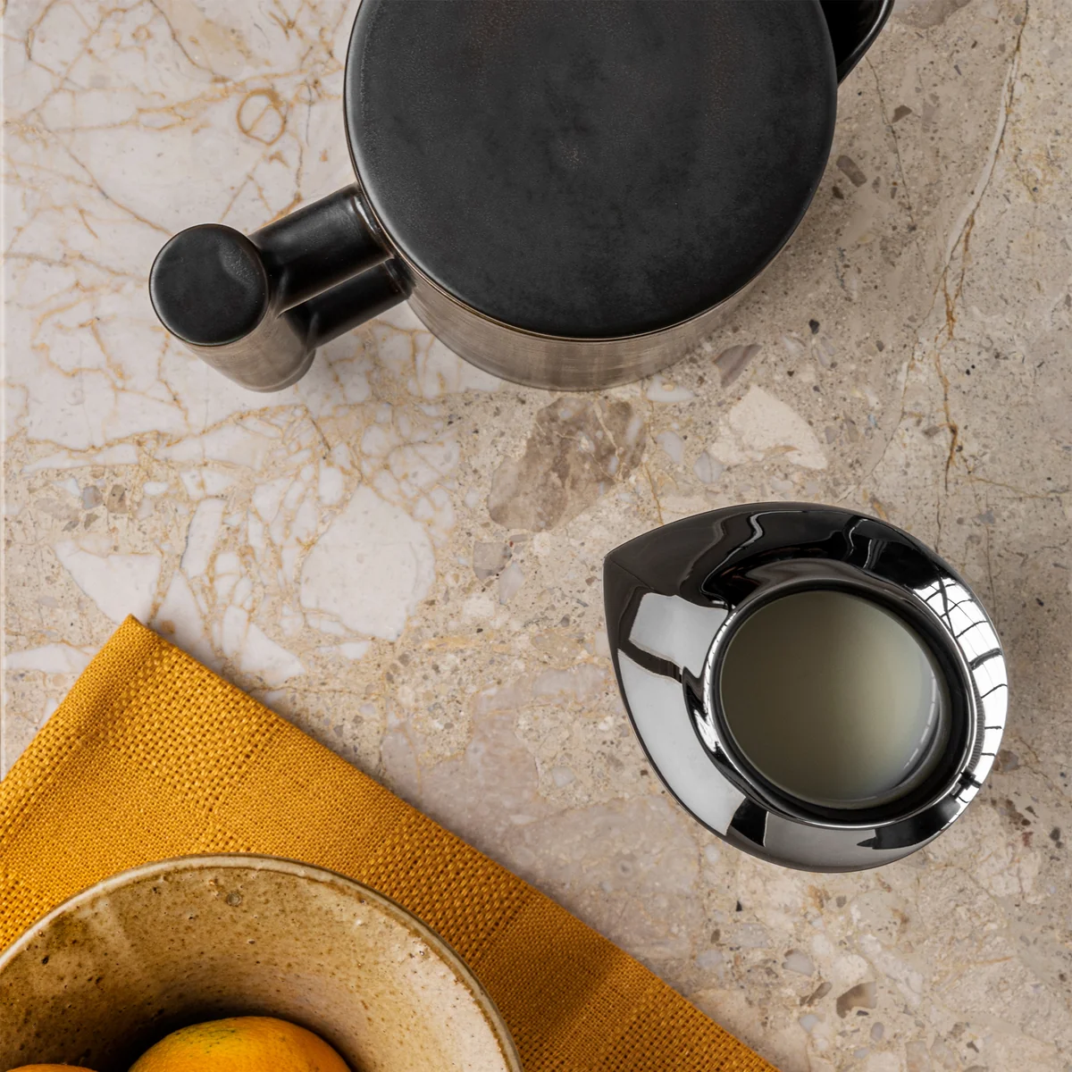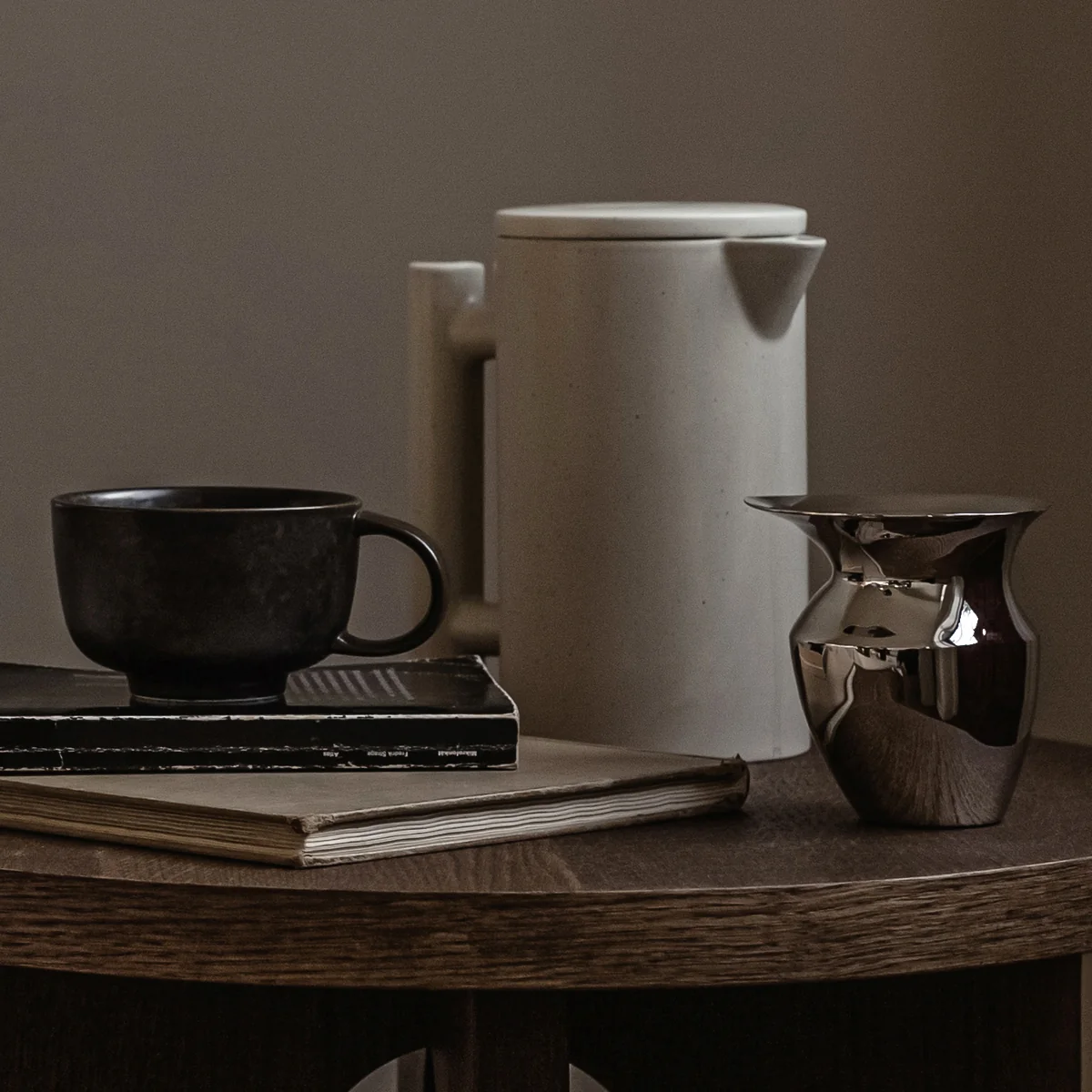 De melkkan Etruscan van de fabrikant Audo is een moderne interpretatie van de klassieke Romeinse kan. Het ontwerp van gepolijst roestvrij staal met gebogen silhouetten kan prachtig functioneren als decoratief object op een zeer klassieke manier als een klein kannetje voor melk. Perfect geproportioneerd voor het eenvoudig schenken van melk of room, is het niet alleen een functioneel plezier voor gebruikers, maar ook visueel aangenaam voor elke toeschouwer.