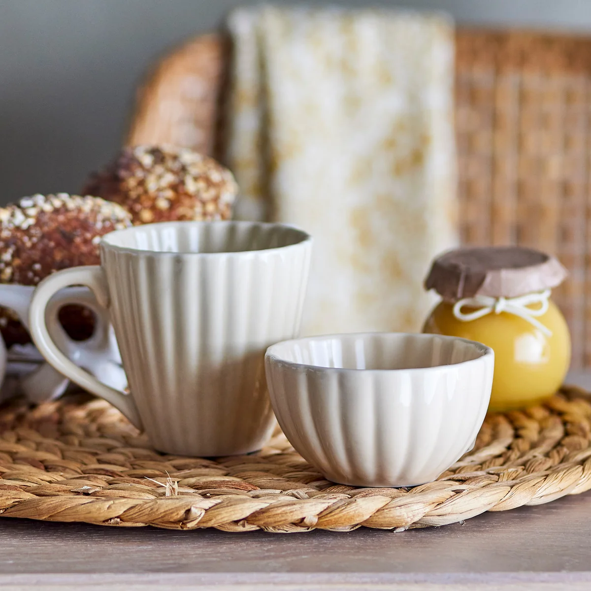 Steengoed mok met groefontwerp