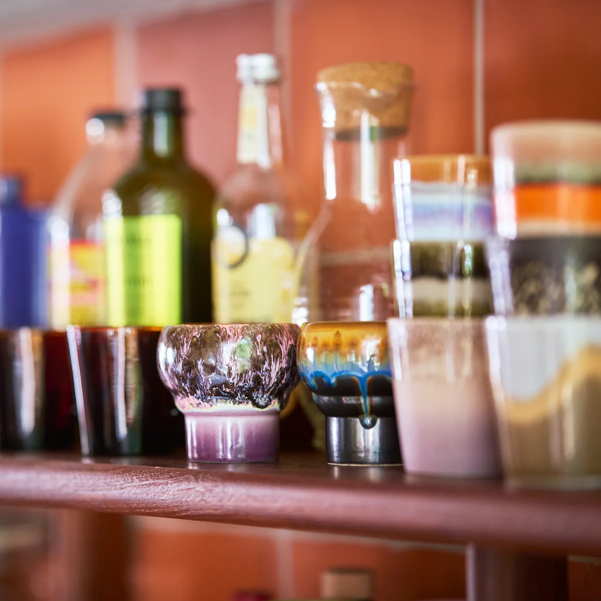 HKliving 70's De lungo mok is een tijdloos eerbetoon aan het design van de jaren 1970. Met zijn opvallende vorm en levendige kleuren geeft deze mok perfect de vintage charme van die tijd weer. De organische, handgemaakte structuur geeft elke mok een uniek tintje, waardoor het een echte blikvanger is op elke gedekte tafel. Het robuuste steengoed materiaal zorgt niet alleen voor duurzaamheid, maar ook voor een aangenaam gevoel. Geniet van je favoriete drankjes in deze stijlvolle lungo mok en dompel jezelf onder in de nostalgie van de jaren 70.