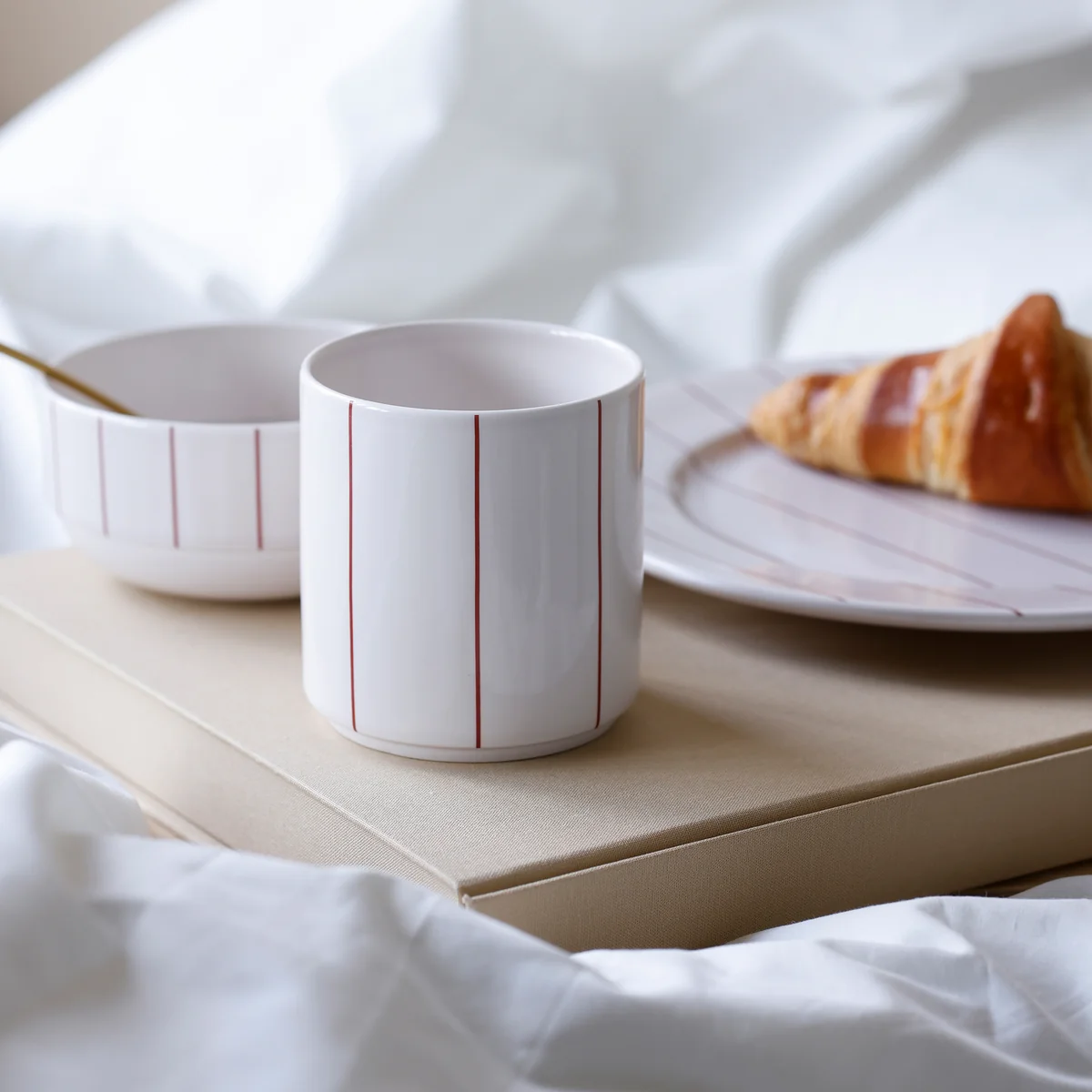 Design Letters De pyjama bekers van . Snacks en pyjama's zijn een perfecte combinatie, en nu kun je zowel jezelf als je favoriete eten aankleden in een stijlvolle pyjama-outfit. De Pyjamas Collectie is de ideale keuze voor ontbijt, avondsnacks of ochtendkoffie. Met zijn fijne strepen ziet hij er fantastisch uit op tafel en voegt hij charme toe aan de keukenplank.