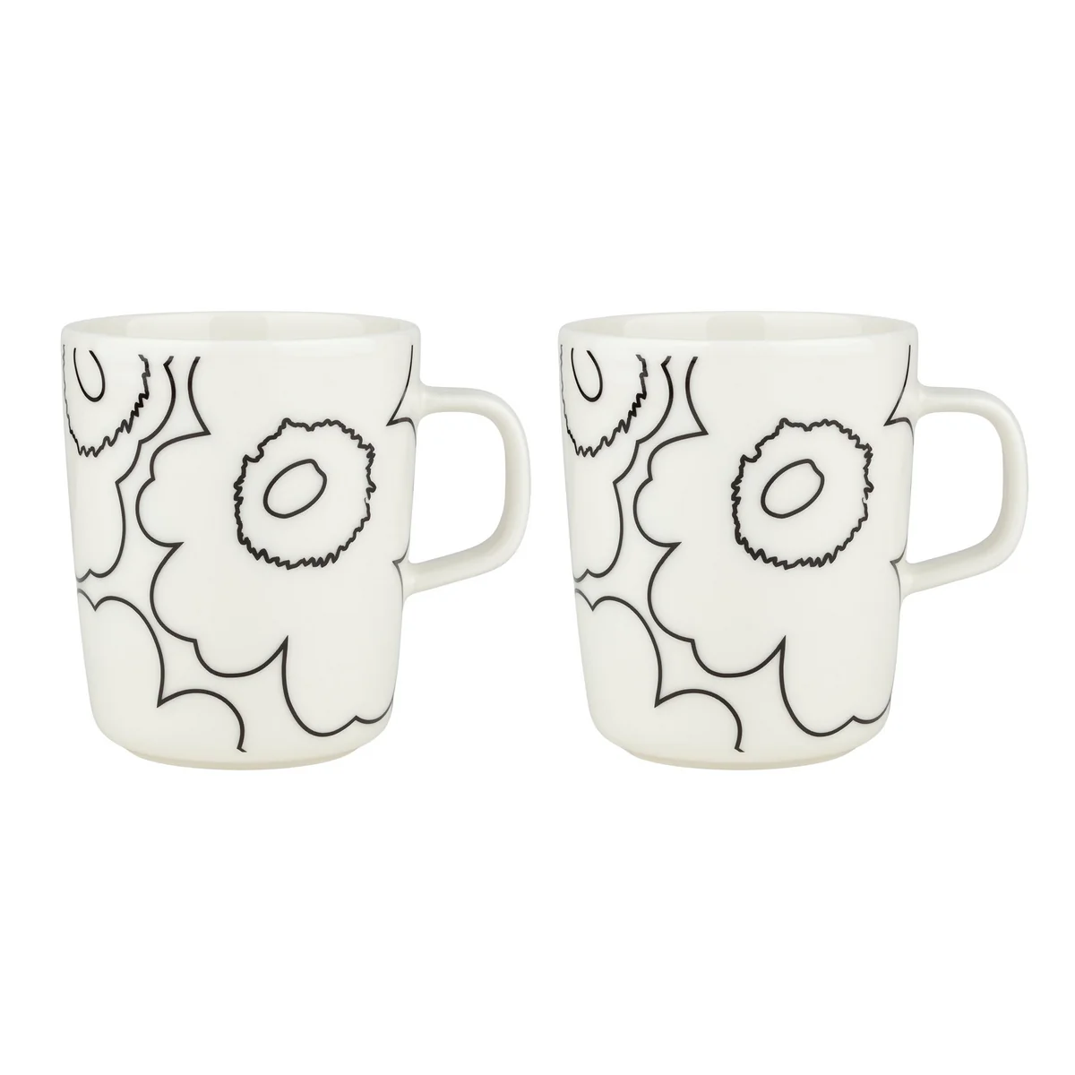 Marimekko De Oiva Piirto Unikko mok met handvat van is gemaakt van wit steengoed en kan gebruikt worden in de vaatwasser, oven, magnetron en vriezer.