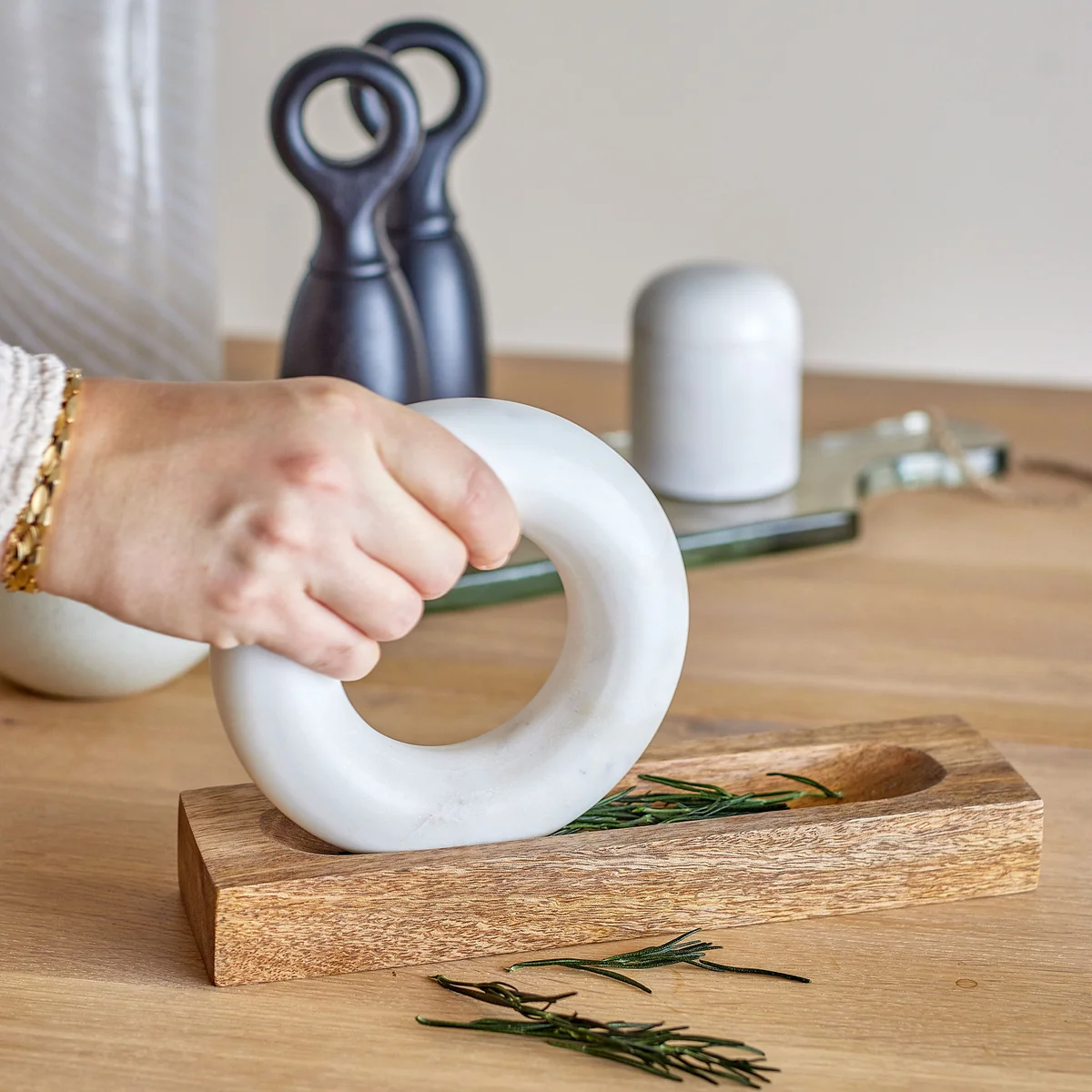Bloomingville - Manuella vijzel en stamper, wit / mango naturel