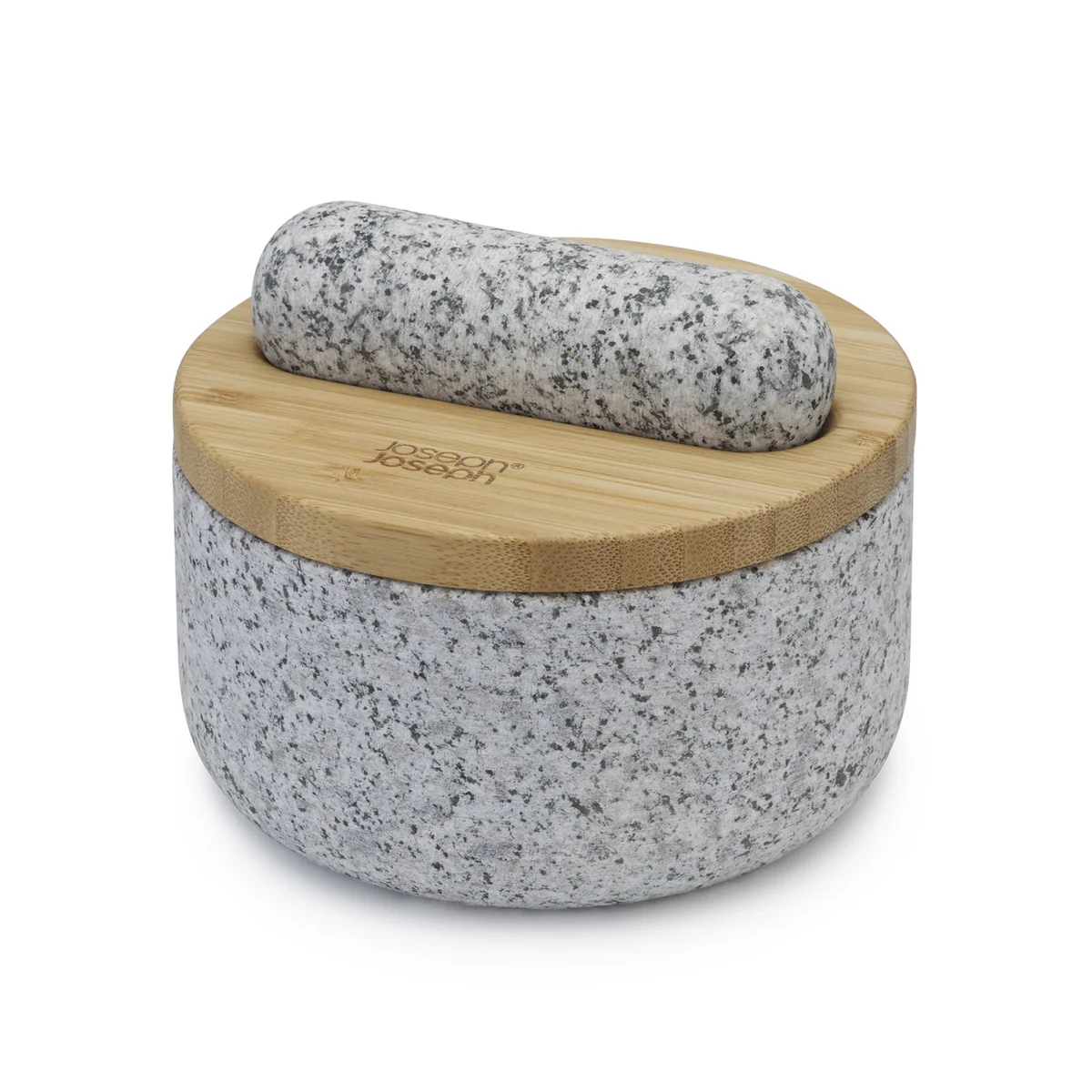Granieten vijzel en stamper met Bamboe deksel
