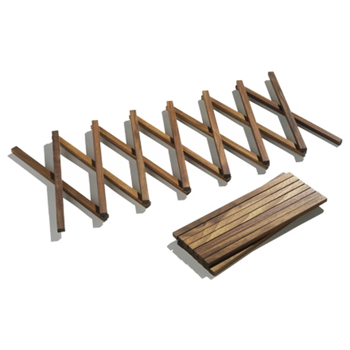 Of het nu gaat om grote of kleine potten, met de uitzetbare onderzetters naast elkaar zijn er geen ruimteproblemen. De grote versie biedt ruimte voor maximaal vier potten met een lengte van 80 centimeter en de kleine versie is 30 centimeter geopend. De onderzetters zijn willekeurig geopend en daardoor gemakkelijk en ruimtebesparend te gebruiken. Zo is de onderzetter snel op tafel en is hij gemakkelijk te verwijderen en op te bergen.