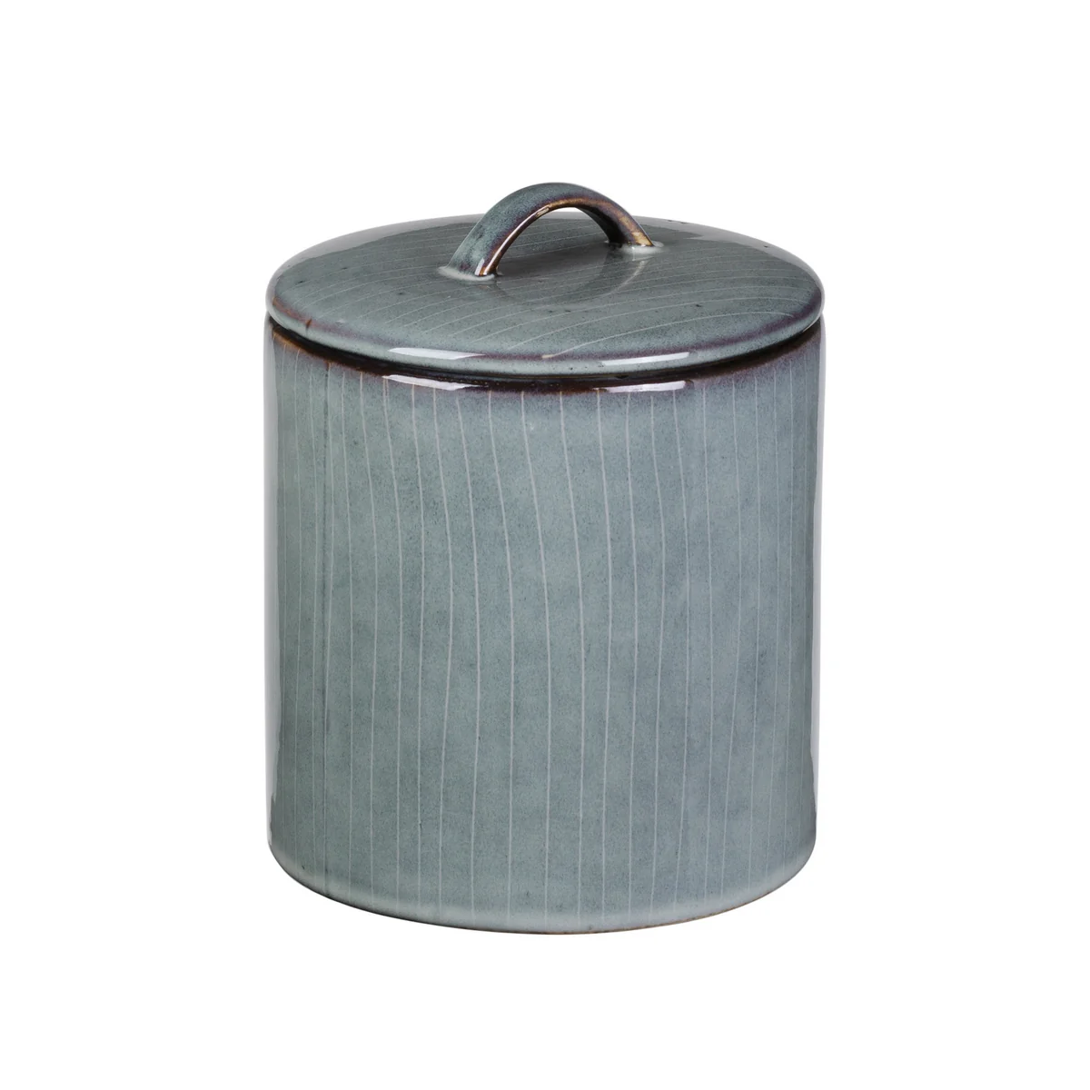 De Nordic Sea voorraadpot van Broste Copenhagen combineert functionele opslag met de typische, Scandinavisch geïnspireerde signatuur van de collectie. Gemaakt van reactief geglazuurd steengoed in een zachte blauwe tint, heeft elke pot individuele kleurovergangen die doen denken aan het veranderende oppervlak van de zee - elk stuk is uniek.