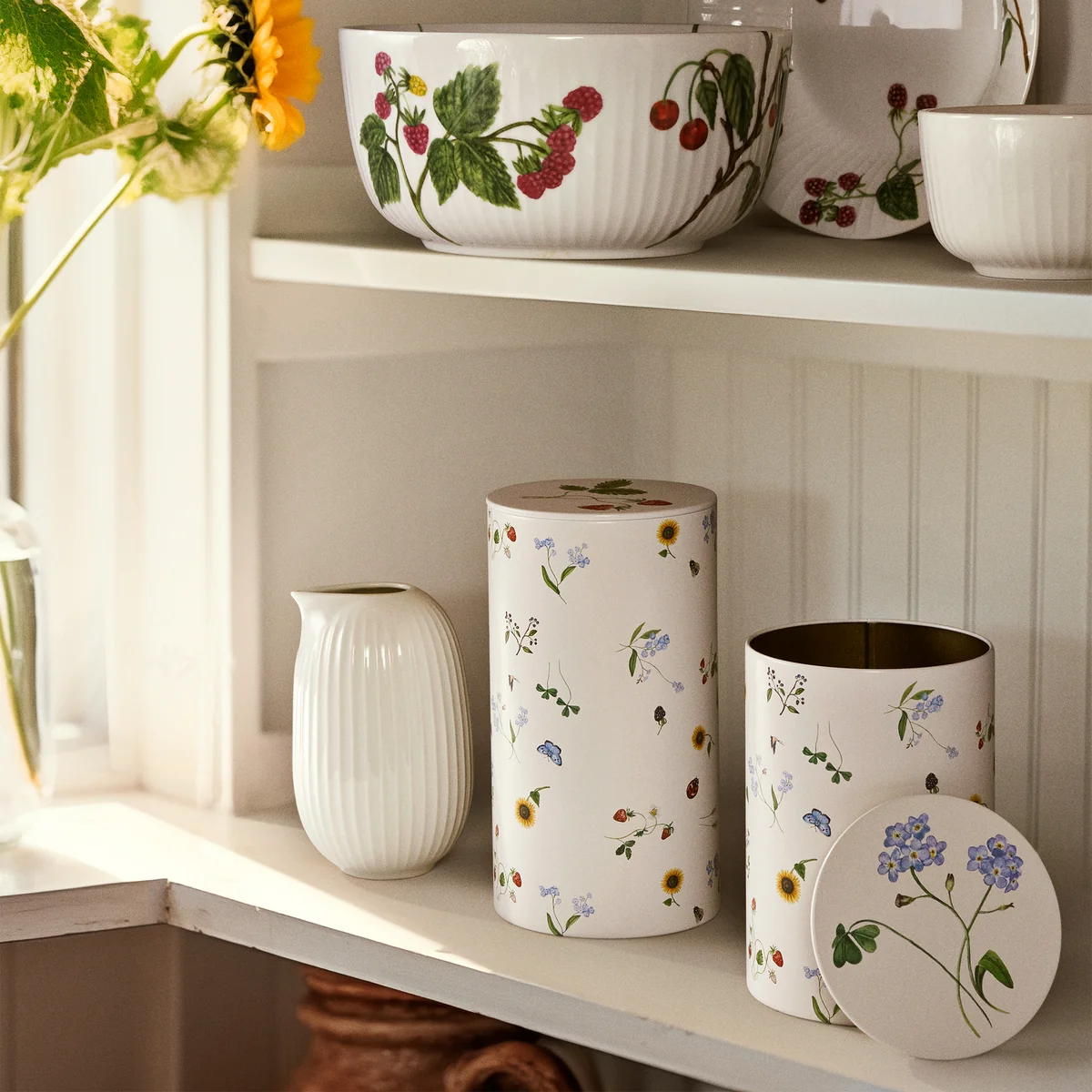 De Hammershøi Summer voorraadpot van Kähler Design combineert functionele opslag met elegante, Scandinavische esthetiek. De iconische Hammershøi groefstructuur ontmoet een delicaat, handgeschilderd bloemen- en natuurmotief, dat doet denken aan de lichtheid van de zomer.