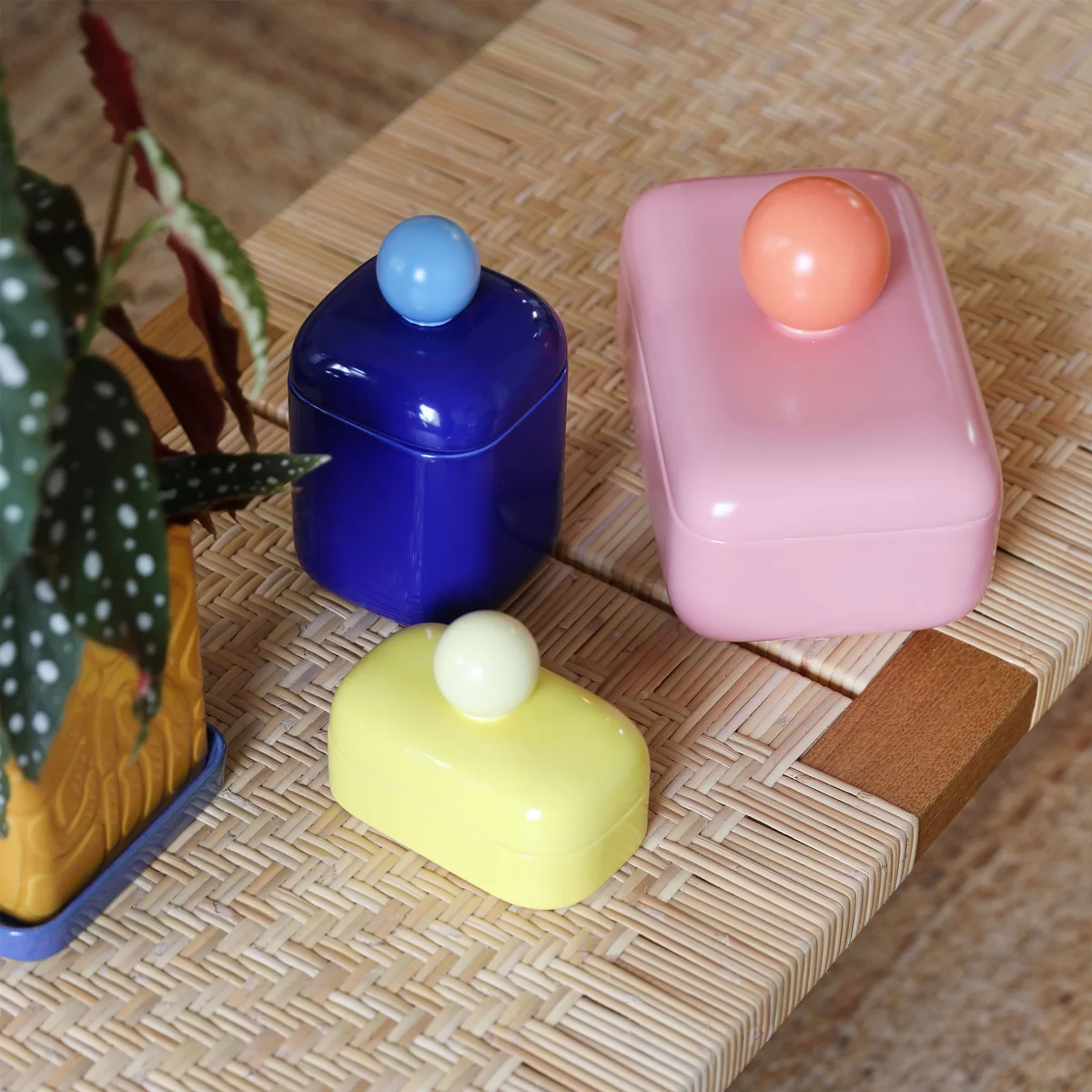 De Orb voorraadpot van & klevering maakt indruk met zijn heldere kleuren en unieke vorm, die je gegarandeerd in een goed humeur brengt. Hij is gemaakt van robuust dolomiet en biedt een veilige en stijlvolle opslag voor je spullen. Het moderne ontwerp voegt een kleurrijk accent toe aan elke kamer en maakt de Orb box tot een praktisch en decoratief hoogtepunt - ideaal voor de woonkamer, het kantoor of de keuken.