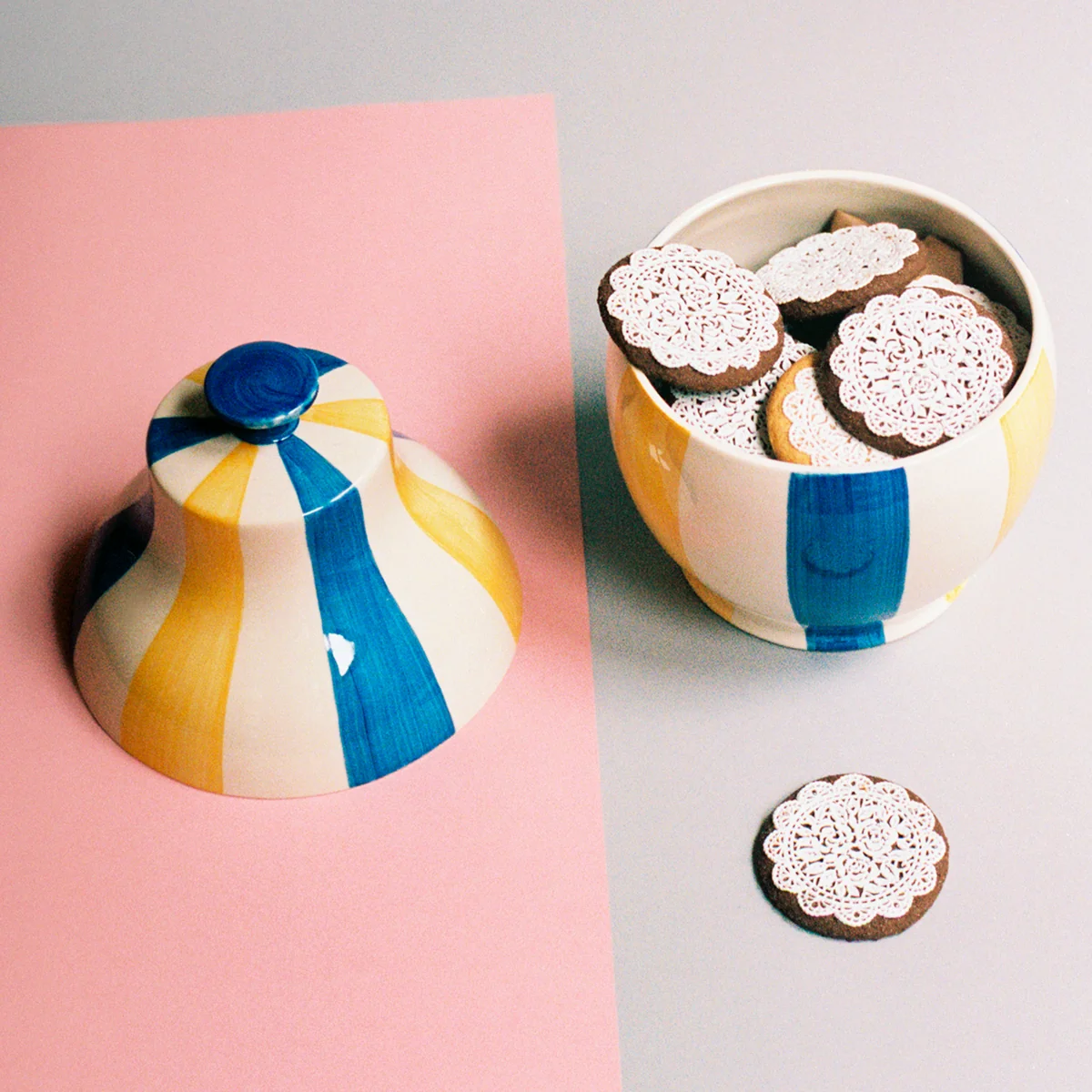 De Sobremesa pot van kunstenaar Laila Gohar in samenwerking met het Deense label HAY viert het samenzijn met vrienden en familie. Het maakt deel uit van de Sobremesa serie, die de sfeer van de maaltijd in een oogwenk verbetert en de tafelaankleding een decoratief tintje geeft. De pot bekoort door zijn klassieke vorm en een bijpassend deksel. Gemaakt van steengoed, de pot is ook Sobremesa pot is ook met de hand beschilderd - dit is een uniek artikel. Verkrijgbaar in verschillende ontwerpen en kleuren.
