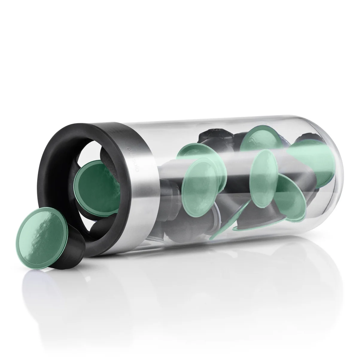 Losse capsules storen je niet meer: De decoratieve Coffee Capsule Dispenser van Eva Solo slaat de kleine cafeïne doseringen op.