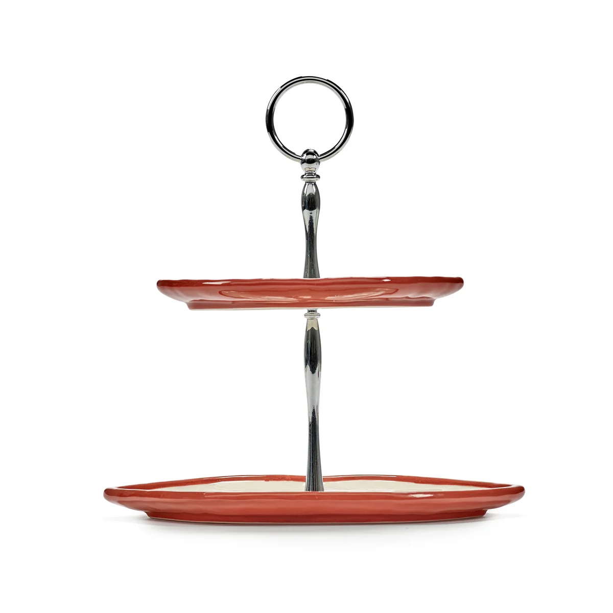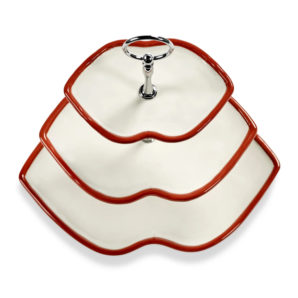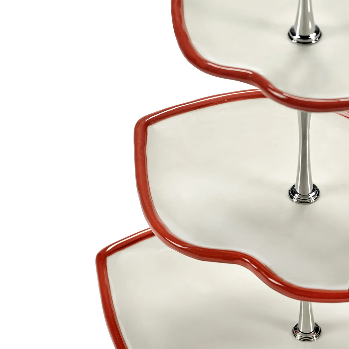 De organisch gevormde etages met een opvallende lip-look zijn kenmerkend en geven de etagère zijn iconische look. De etagère is gemaakt van hoogwaardig steengoed en biedt een stabiel en toch decoratief platform voor gebak, chocolade of kleine hapjes. De verticale opstelling creëert niet alleen een spannende blikvanger, maar ook een ruimtebesparend presentatieoppervlak voor stijlvolle tafelschikkingen.