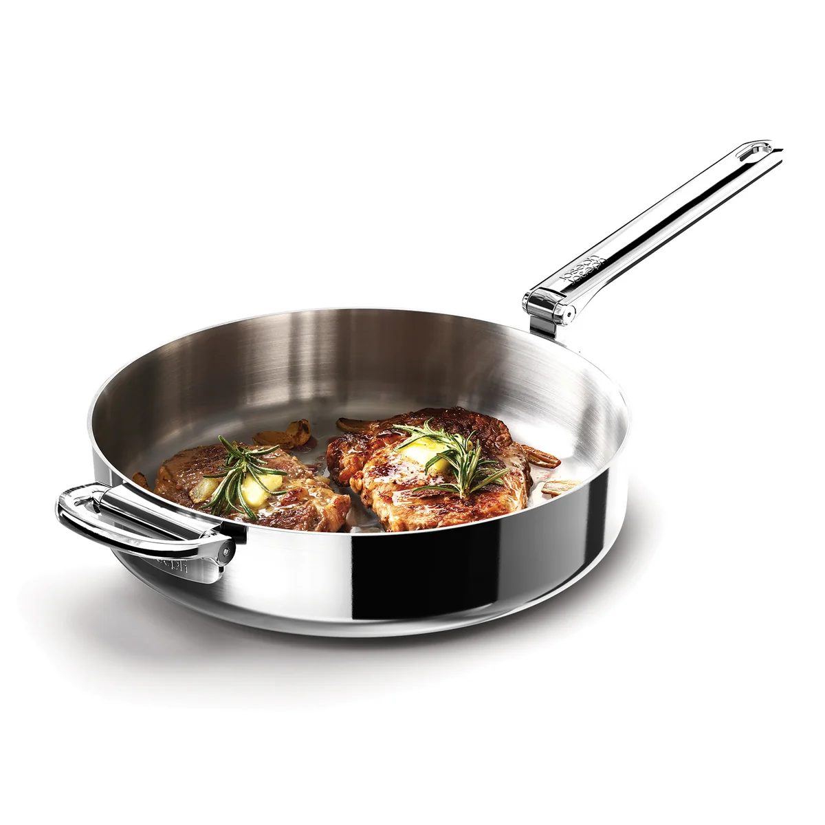 Een onderscheidend kenmerk van het kookgerei Space kookgerei zijn de inklapbare roestvrijstalen handgrepen. Uitgerust met het gepatenteerde, faalveilige SwingLock™-mechanisme kunnen de handgrepen veilig worden vergrendeld tijdens het koken en compact worden ingeklapt om op te bergen. Hierdoor neemt het kookgerei tot 50% minder opbergruimte in beslag dan conventionele potten en pannen - ideaal voor ruimtebewuste keukenoplossingen.