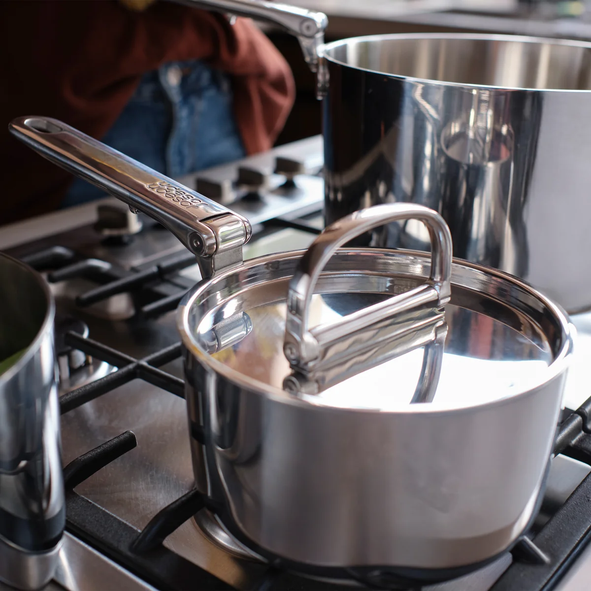 De Space kookgerei van Joseph Joseph is speciaal ontwikkeld voor moderne keukens waarin hoogwaardige kookprestaties en intelligent opbergen hand in hand gaan. De Space assortiment is gericht op mensen die van koken houden, maar belang hechten aan orde, efficiëntie en duurzame materialen.