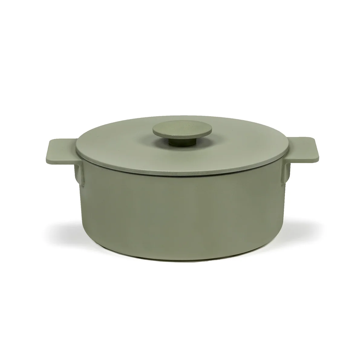 De Surface Gietijzeren stoofpan van Serax biedt voldoende ruimte voor het bereiden van stevige soepen, stoofpotten, stoofschotels en meer. De ruime binnenkant laat ingrediënten sudderen en samenvloeien, waardoor rijke en smaakvolle gerechten ontstaan. De gietijzeren constructie zorgt voor een gelijkmatige, consistente warmteverdeling voor zacht en gelijkmatig koken.