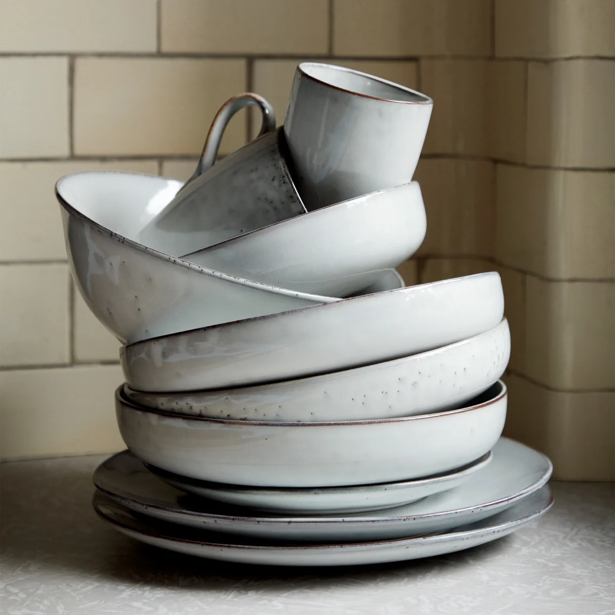 Het onregelmatige glazuur doet denken aan het zand dat over het strand veegt en de winderige golven van de Noordse Zee. Dit zorgt voor een Scandinavisch tintje op de eettafel en zorgt voor een echt vakantiegevoel.