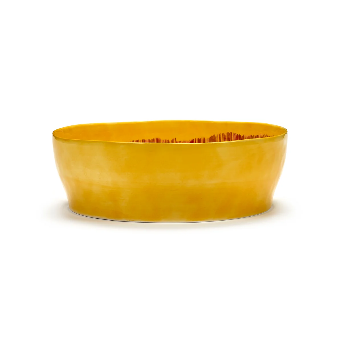 Deze geglazuurde slakom brengt frisse kleur en een mediterrane sfeer op tafel. Hij maakt deel uit van de Feast-collectie van Yotam Ottolenghi en maakt indruk met zijn expressieve kleuren en hoogwaardige keramische materiaal. Elke kom is uniek en met de hand afgewerkt, wat kan leiden tot kleine onregelmatigheden - een teken van echt vakmanschap en onderdeel van het speciale karakter van de collectie.