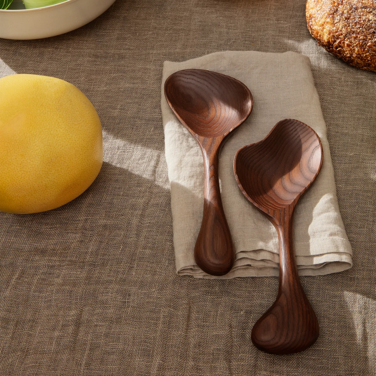 De Os slabestekken van Ferm Living brengen uitmuntendheid en extravagantie in het dagelijks leven: afgeleid van het Franse woord voor bot, heeft het bestek de afgeronde vormen van botten. De zachte rondingen en de sculpturale details zorgen voor een gegarandeerde blikvanger aan elke eettafel. Gemaakt van FSC-gecertificeerd essenhout met een verkoolde afwerking, hebben de slabestekken een betekenisvolle artistieke expressie die de saaie norm van alledaagse voorwerpen overstijgt.