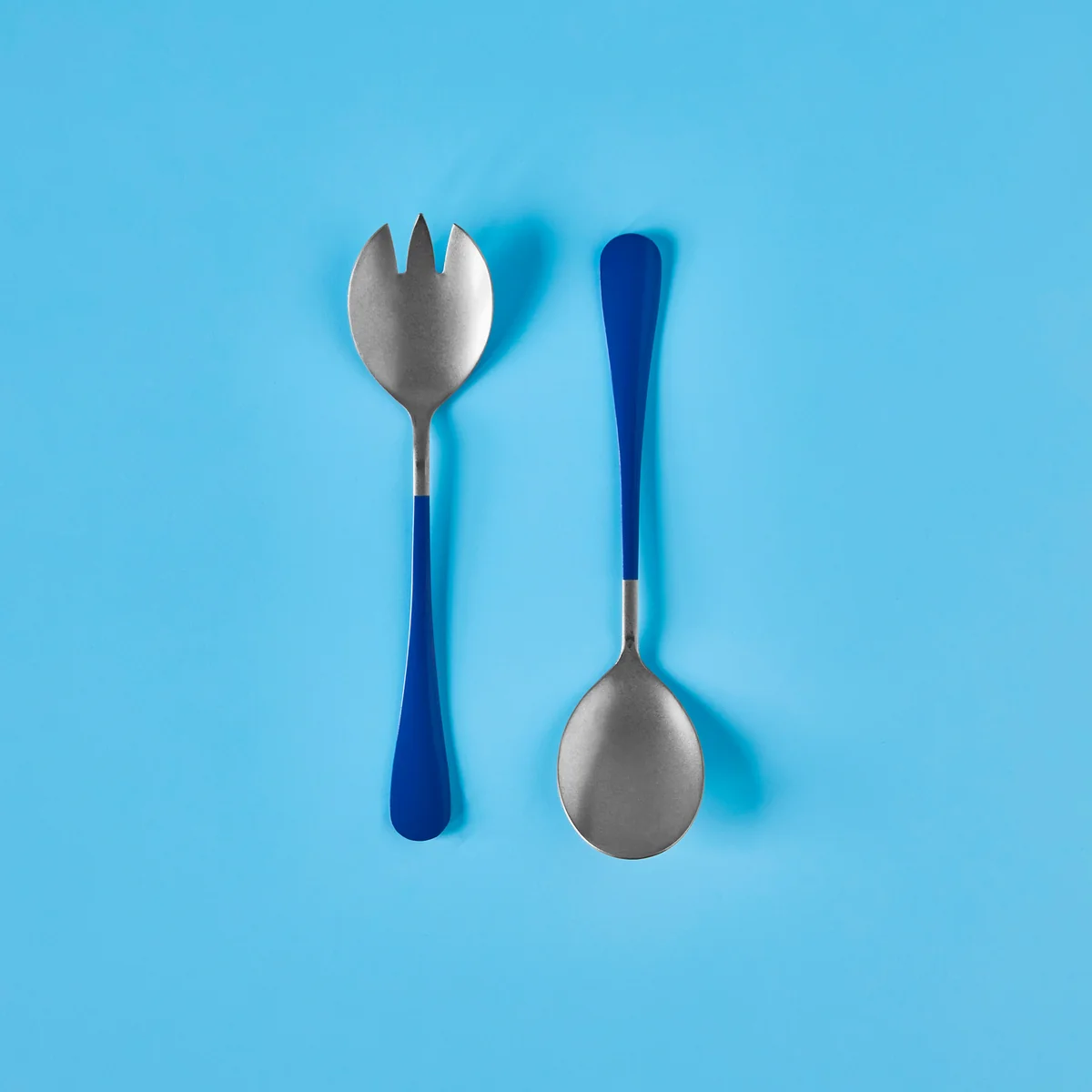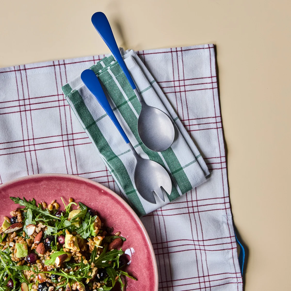 De Serv slascheppen van Nicolas Vahé geven elke tafel een speciaal tintje. Gemaakt van hoogwaardig roestvrij staal met een antieke look, combineert het rustieke elegantie met een modern vleugje kleur dankzij de blauwe handgrepen. Voor een ontspannen brunch, het serveren van knapperige zomersalades of als decoratief detail op je feesttafel - deze tweedelige set maakt van elke maaltijd een stijlvol genietmoment. Voor optimaal onderhoud wordt handwas aanbevolen om de kleurintensiteit te behouden.