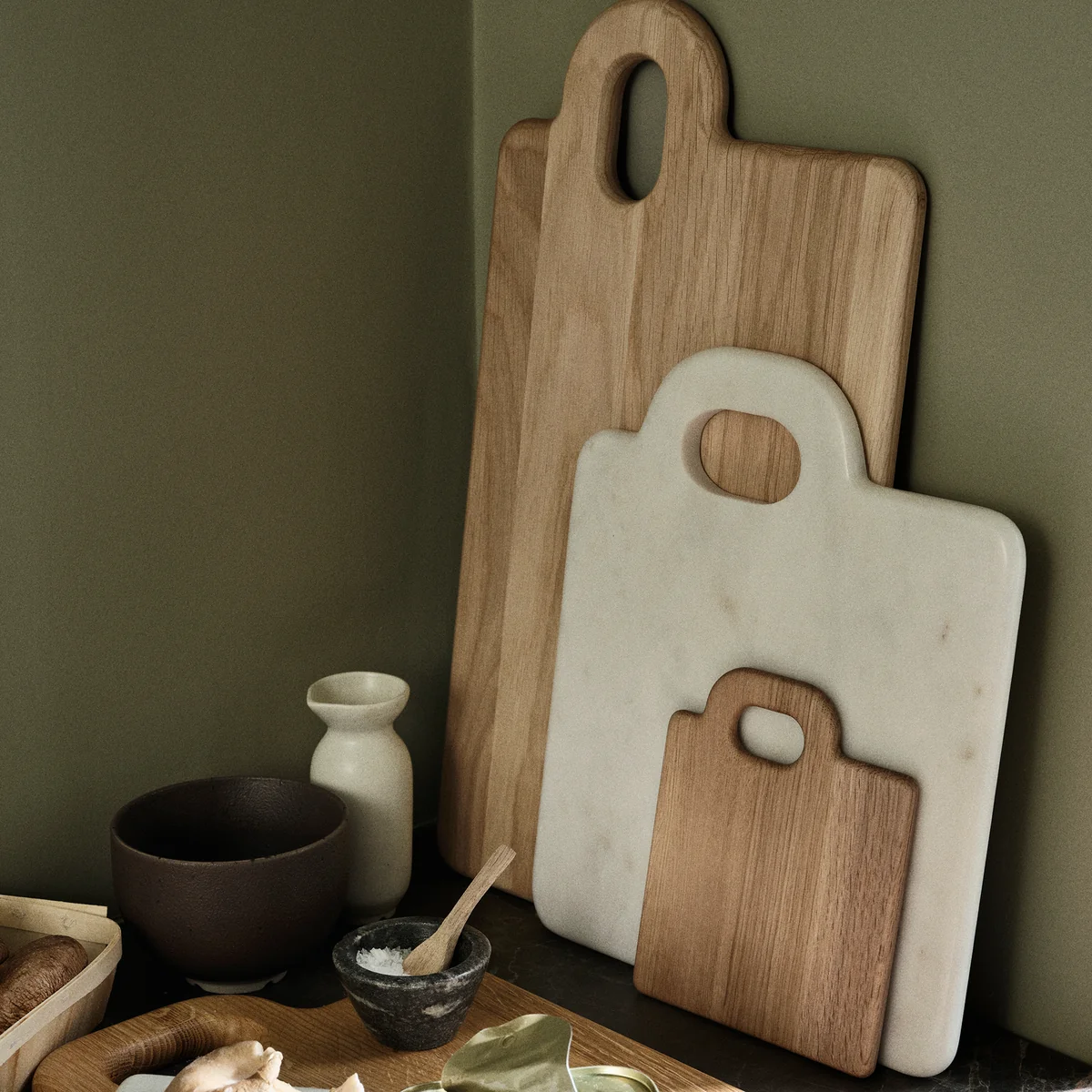 De Olina snijplank van Broste Copenhagen is volledig gemaakt van hout of marmer. Omdat het een massief en natuurlijk materiaal is, heeft elk stuk individuele en unieke, onherhaalbare nerven en tinten die elke plank exclusief maken.