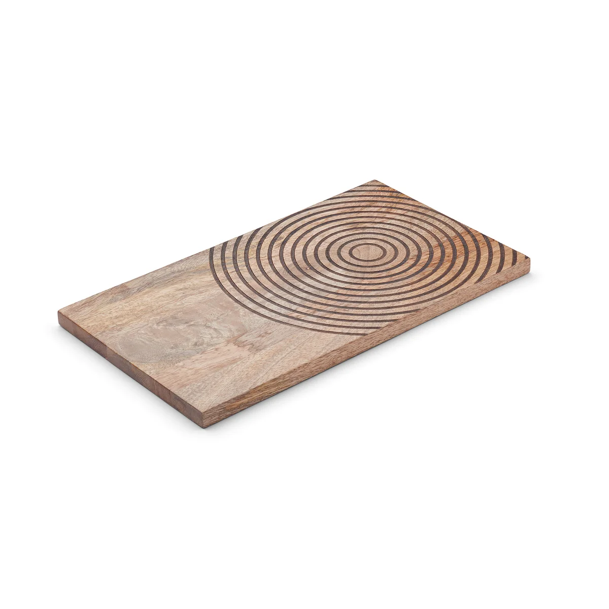 De Deco serveerplank van het Deense label Humdakin is een grote blikvanger met zijn natuurlijke look en de boomringdetails! Het bord is ideaal voor het presenteren van brood, fruit, groenten, kaas of vlees. Deco is gemaakt van mangohout en is voedselveilig. Met zijn afmetingen van 30 x 15 cm is het de perfecte maat voor alledaagse keukentaken.