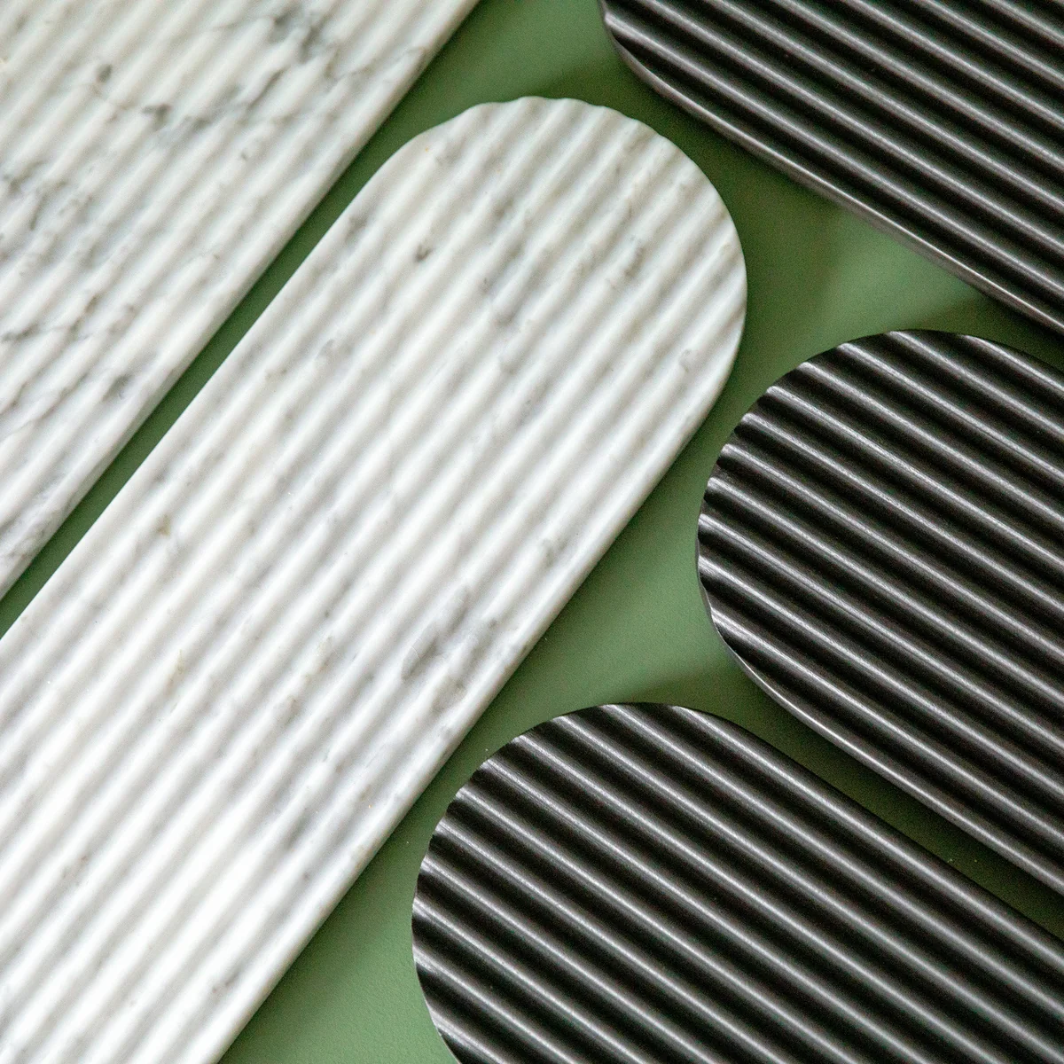 De Podium dienblad van Northern maakt indruk met zijn ovale, langwerpige vorm en het geribbelde oppervlak. Gemaakt van massief marmer of steen is de serveerplank zeer geschikt als dienblad voor de theepot.