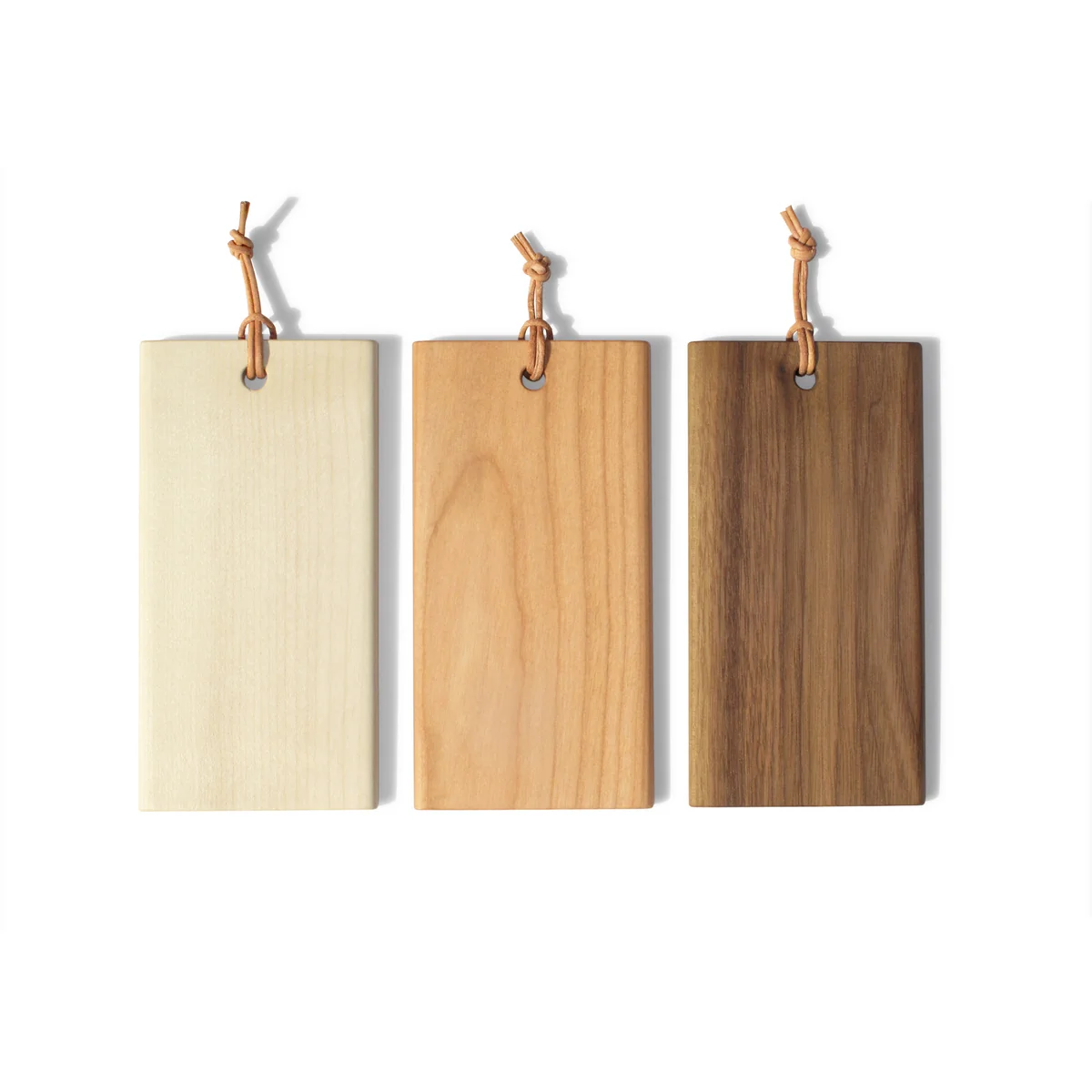 De plank, die in verschillende houtsoorten verkrijgbaar is, brengt een heerlijke natuurlijke flair in de keuken en overtuigt ook met een kleine lus voor het ophangen.