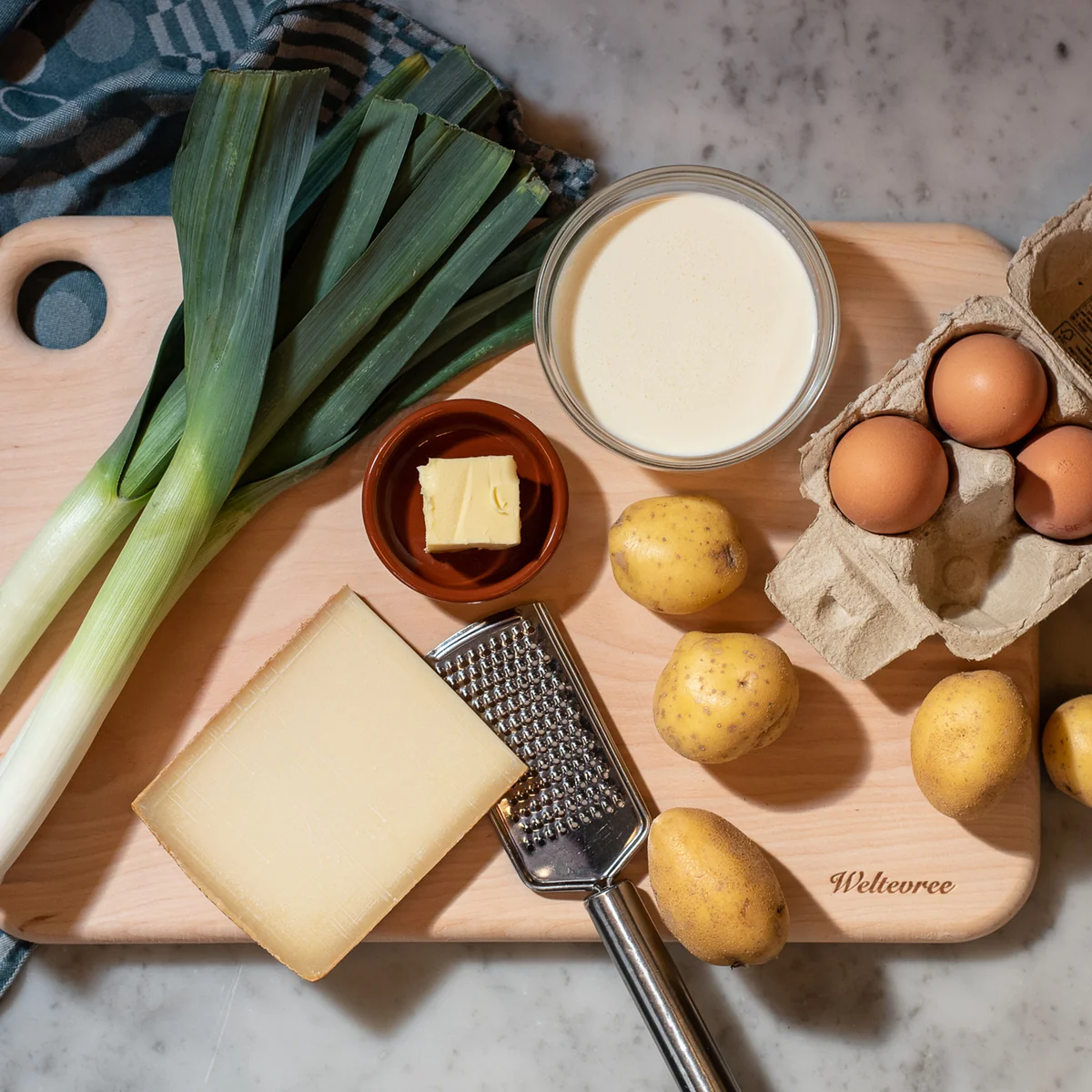 De snijplank is Weltevree afkomstig van de pen van de ontwerper Lex Pott. Bijzonder zijn de zachte, ronde vormen. Het gat in een hoek van de houten plank is handig om op te hangen, maar biedt ook een uitstekende ondersteuning bij het serveren, omdat de duim er perfect doorheen past.