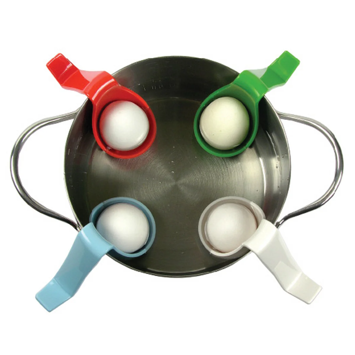 Eiko is de ingenieuze oplossing voor een perfect ontbijteiland. Met Eiko kunt u koken, tijd nemen, verversen en uw ei eten: hang de eierdopjes in een pot met kokend water, noteer de individuele kooktijden met de verschillende kleuren, verwijder de eieren met het hittebestendige handvat en houd het onder koud water. Dit houdt uw ei en handen veilig en laat het ei direct in uw eierdopje en ontbijttafel komen.