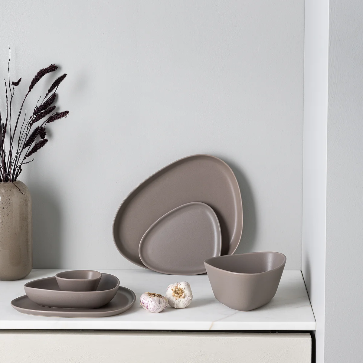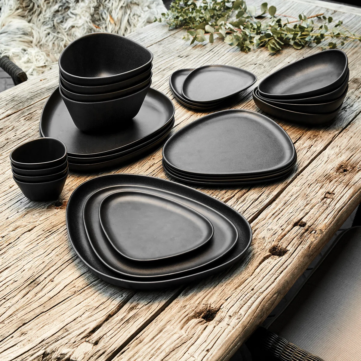 De Curve Stoneware platen van Lind DNA zijn verkrijgbaar in verschillende kleuren en uitvoeringen.