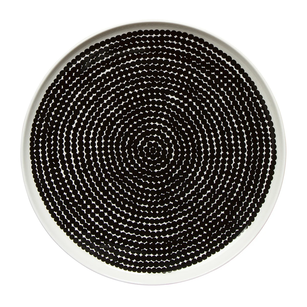 Met verschillende diameters heeft de plaat de juiste Oiva Räsymatto de juiste maat voor bijgerechten. Marimekko vervaardigt het bord van steengoed.
