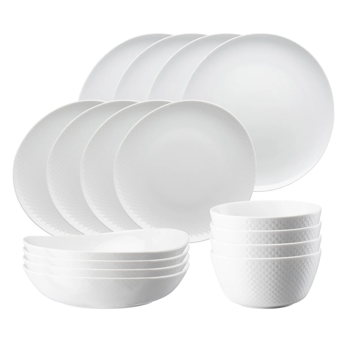 | Details | Set bestaat uit: 4x diepe borden 22 cm, 4x eethoekborden 27 cm (reliëf boven- en onderkant), 4x graanschaal 14 cm / 0,62 l, 4x borden 22 cm |