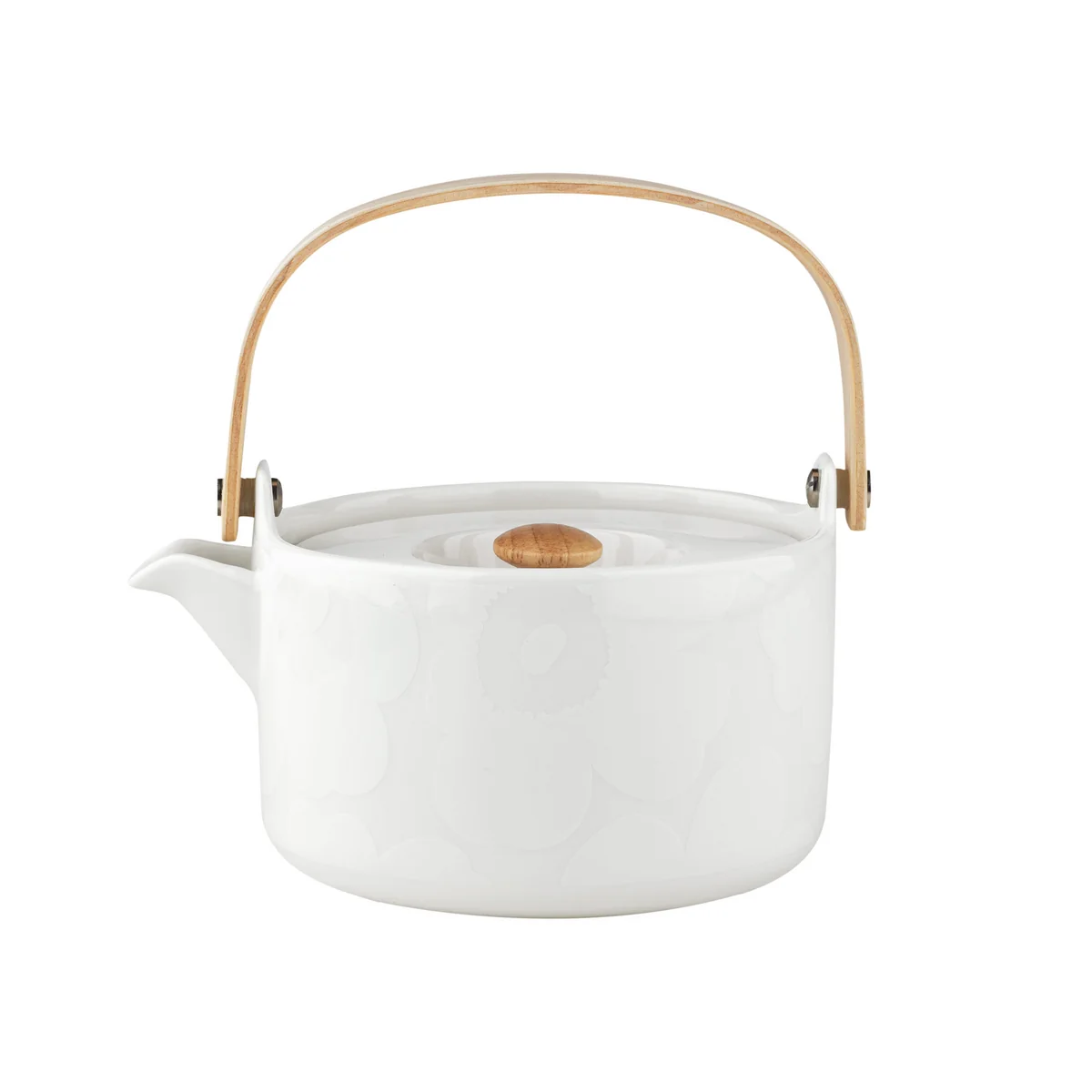 De Unikko theepot is gemaakt van fijn steengoed, terwijl het handvat en de dekselknop gemaakt zijn van robuust hout. Een spannende mix van materialen die visueel en haptisch aantrekkelijk is. Een rubberen afdichting aan de rand van het deksel zorgt voor een goede afsluiting en voorkomt lekkage bij het schenken.