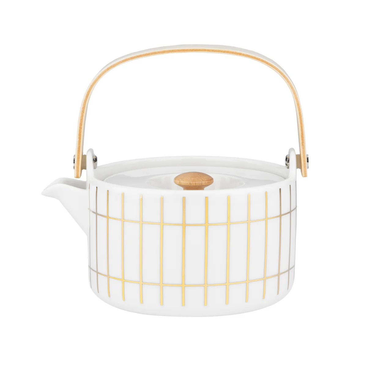 De Oiva Tiiliskivi theepot van Marimekko is een tijdloos meesterwerk van Scandinavische designkunst. Met zijn duidelijke, geometrische patroon, dat is geïnspireerd op Tiiliskivi Finse bakstenen, geeft het de essentie van eenvoud en functionaliteit weer. De theepot maakt niet alleen indruk met zijn esthetische uiterlijk, maar ook met zijn uitstekende kwaliteit. Hij is gemaakt van hoogwaardig porselein, houdt de thee lang warm en voegt een vleugje elegantie toe aan elke theedrinkervaring. De Oiva Tiiliskivi theepot is een must-have voor alle liefhebbers van Scandinavisch design en biedt een perfecte combinatie van vorm en functie die het dagelijks leven verbetert.