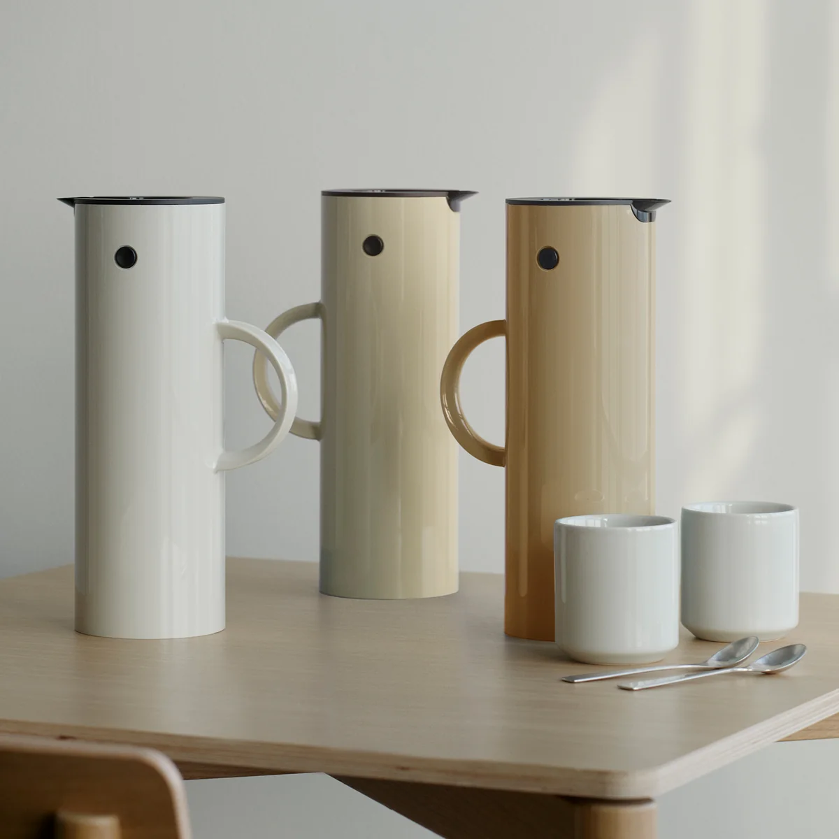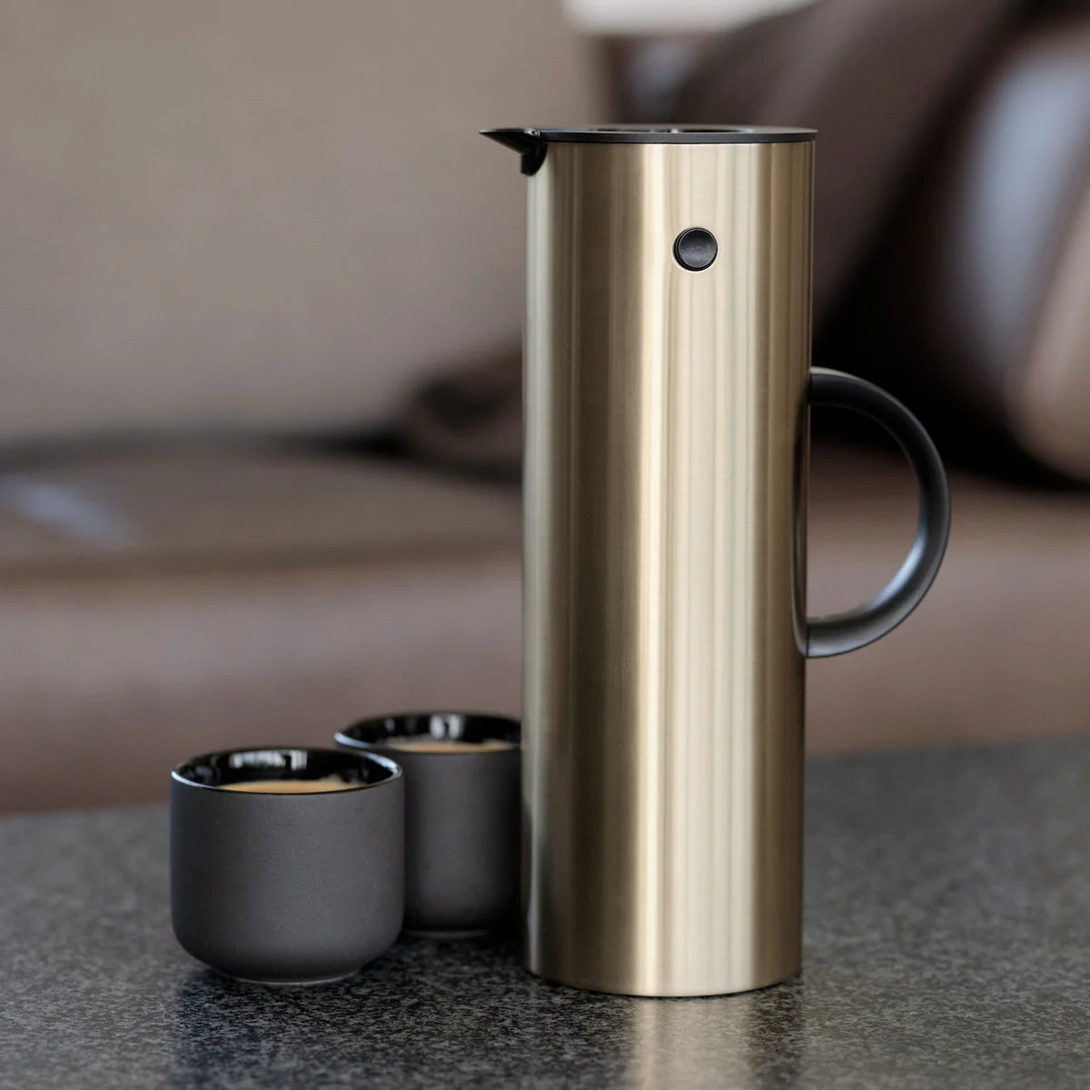 Stelton s EM 77 thermoskan met het beroemde kanteldeksel van Erik Magnussen is een klassieker. Door het mooie en compacte ontwerp, de uitstekende afwerkingskwaliteit en niet in de laatste plaats door het unieke kanteldeksel is de kan een tijdloos en gewild ontwerp voor in de keuken.