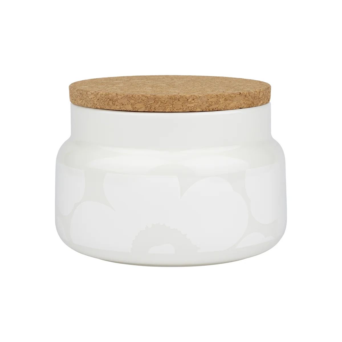 De Oiva Unikko voorraadpot van het Finse huis Marimekko bekoort met zijn bloemenpatroon en de edele details. Het blik met een inhoud van 700 of 1200 ml is gemaakt van wit steengoed met gouden metaalpigmenten. Het blik heeft een kurken deksel dat aan de binnenkant is versierd met het Marimekko logo.
