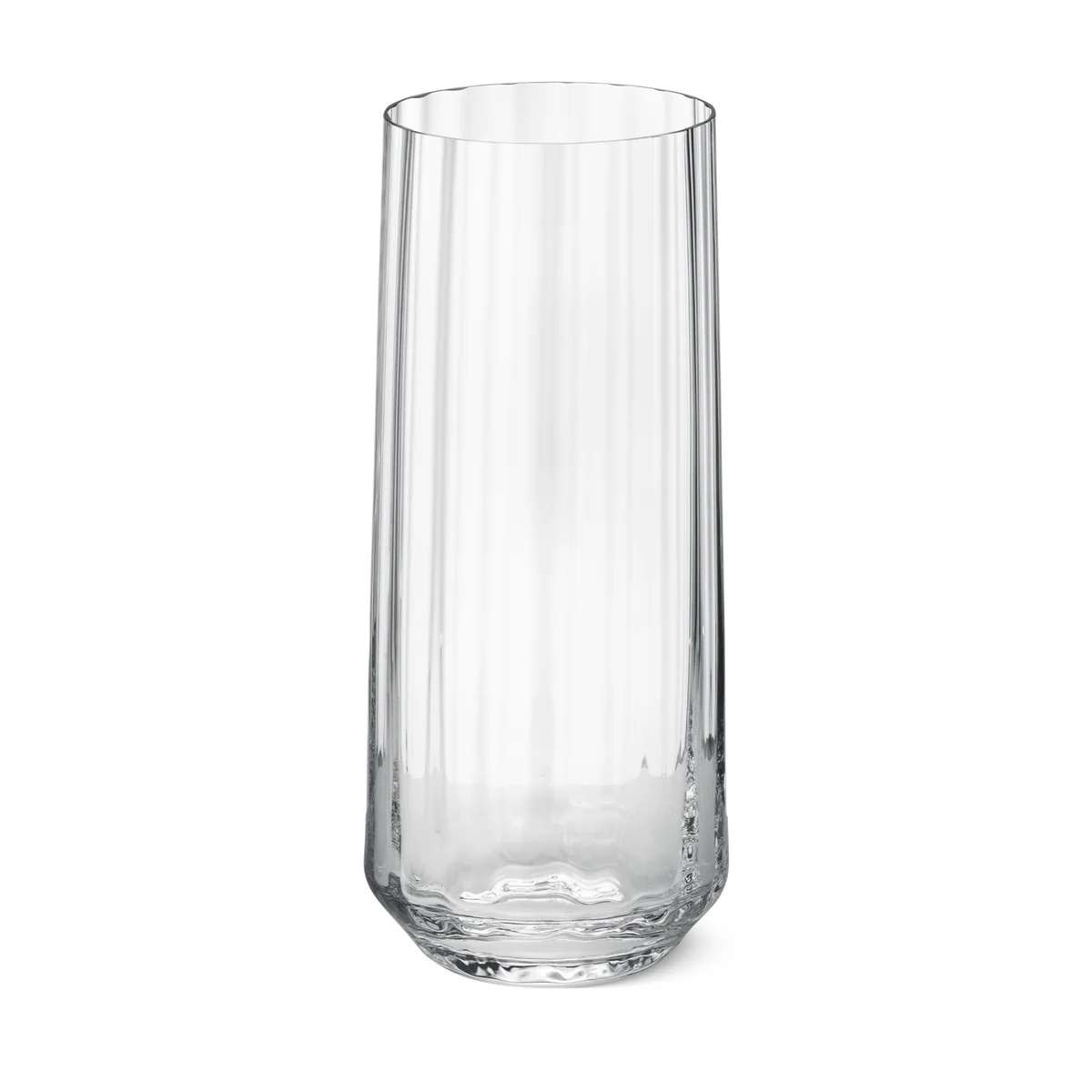 De zachte groeven van de Bernadotte drinkglas van Georg Jensen weerspiegelen het ontwerp van de gelijknamige collectie. Minimalistisch design en heldere lijnen, gecombineerd met verfijnde groefdetails, leiden terug naar de oorspronkelijke ontwerpen van de Zweedse prins Sigvard. Bernadotte terug. De glazen van loodvrij kristal kunnen worden gebruikt als elegante waterglazen voor dagelijks gebruik, maar ook voor een heerlijke gin en tonic. Samen met ander servies van de Bernadotte -collectie, sieren ze een stijlvol gedekte tafel voor een ontspannen avond met vrienden of een ontbijt met het gezin.