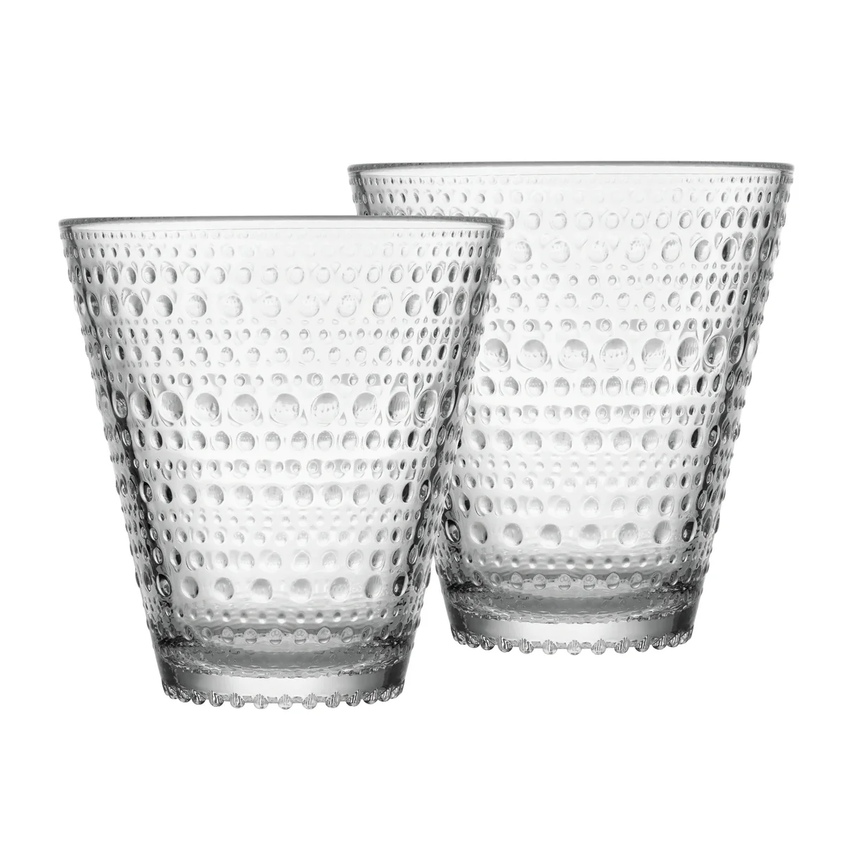 De Kastehelmi glazen zijn verkrijgbaar in verschillende kleuren die passen bij de schalen, borden en waxinelichthouders met het karakteristieke druppeldesign. Het speciale oppervlak maakt de Iittala glazen niet alleen een visueel maar ook een tactiel hoogtepunt.