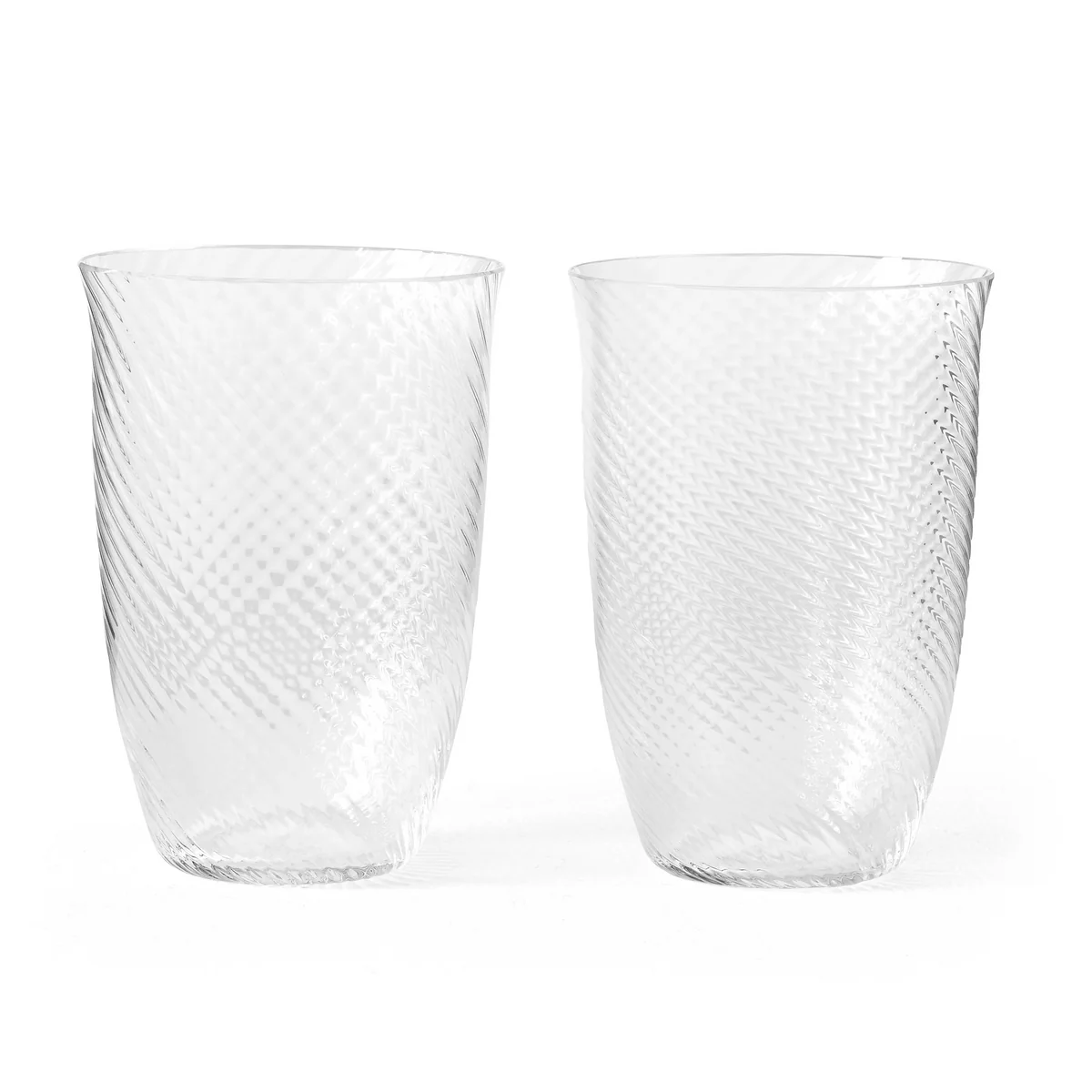 De Collect drinkglas van & Tradition wordt geleverd in een eenvoudige maar duidelijk moderne set van 2. Het heeft een subtiel wervelend motief dat de wervelende aard van water weerspiegelt. Volgens een gebruikelijk kenmerk van Aziatisch design hebben de glazen een licht naar buiten afgeronde rand die een natuurlijke ruimte voor de lip creëert.