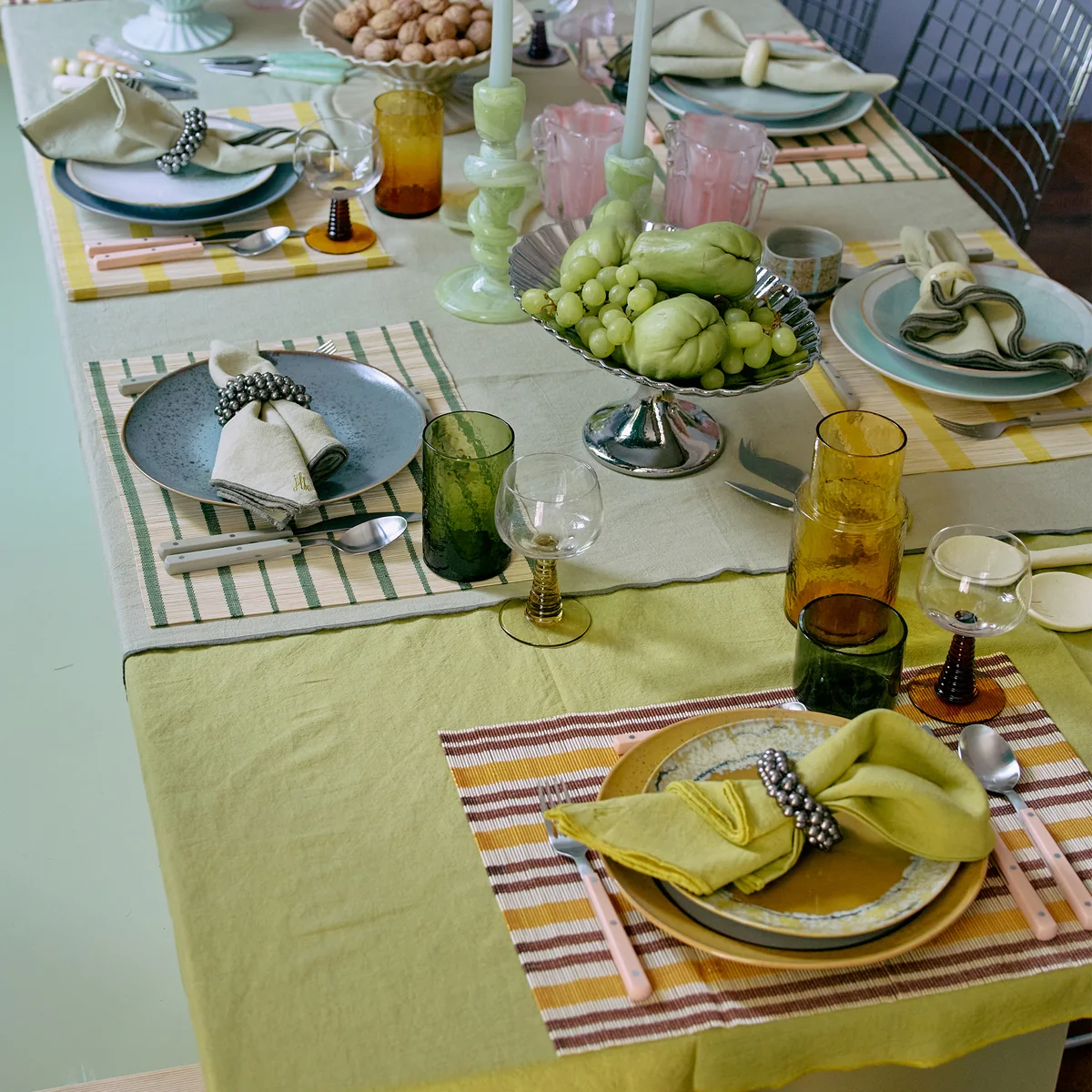 Het hoge Tube drinkglas van HKliving borduurt voort op de opvallende designtaal van de collectie: gekleurd glas met een subtiel onregelmatig oppervlak dat het licht effectief reflecteert. Met zijn royale, cilindrische vorm ziet het er zowel modern als elegant uit - ideaal voor longdrinks of bruisend water.