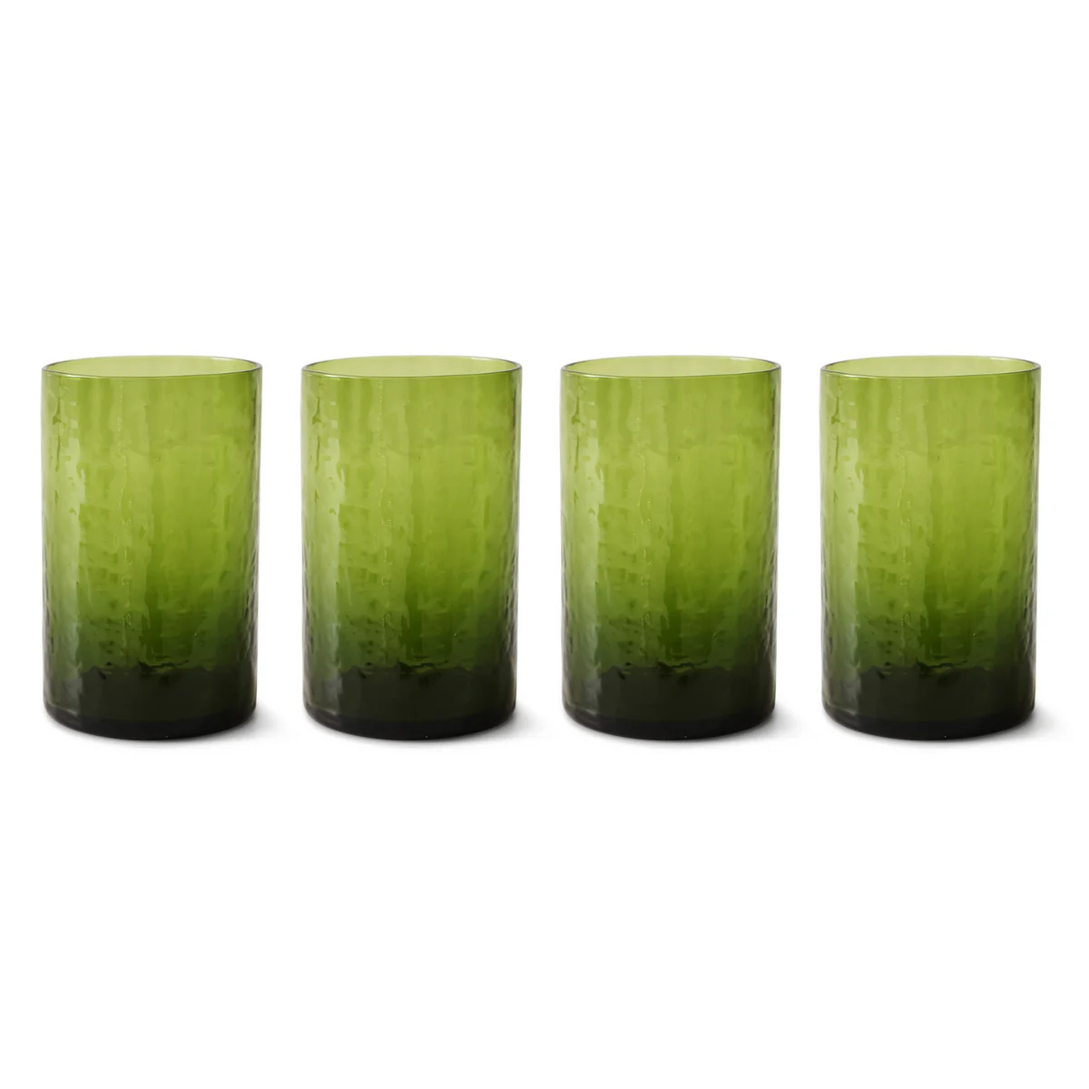 Het hoge Tube drinkglas van HKliving borduurt voort op de opvallende designtaal van de collectie: gekleurd glas met een subtiel onregelmatig oppervlak dat het licht effectief reflecteert. Met zijn royale, cilindrische vorm ziet het er zowel modern als elegant uit - ideaal voor longdrinks of bruisend water.