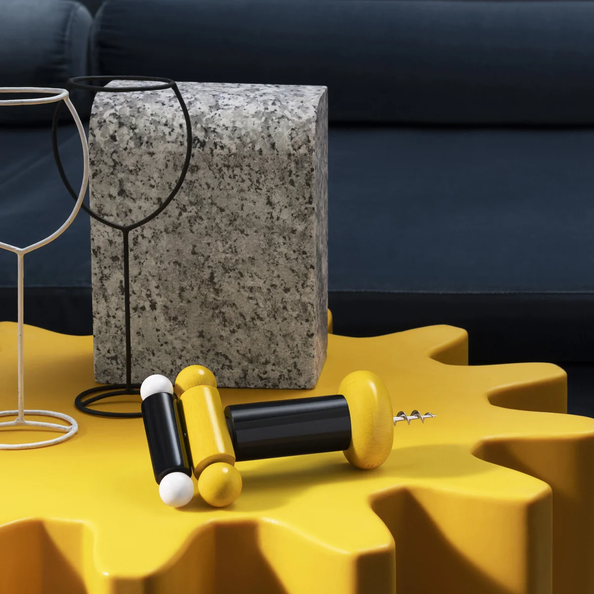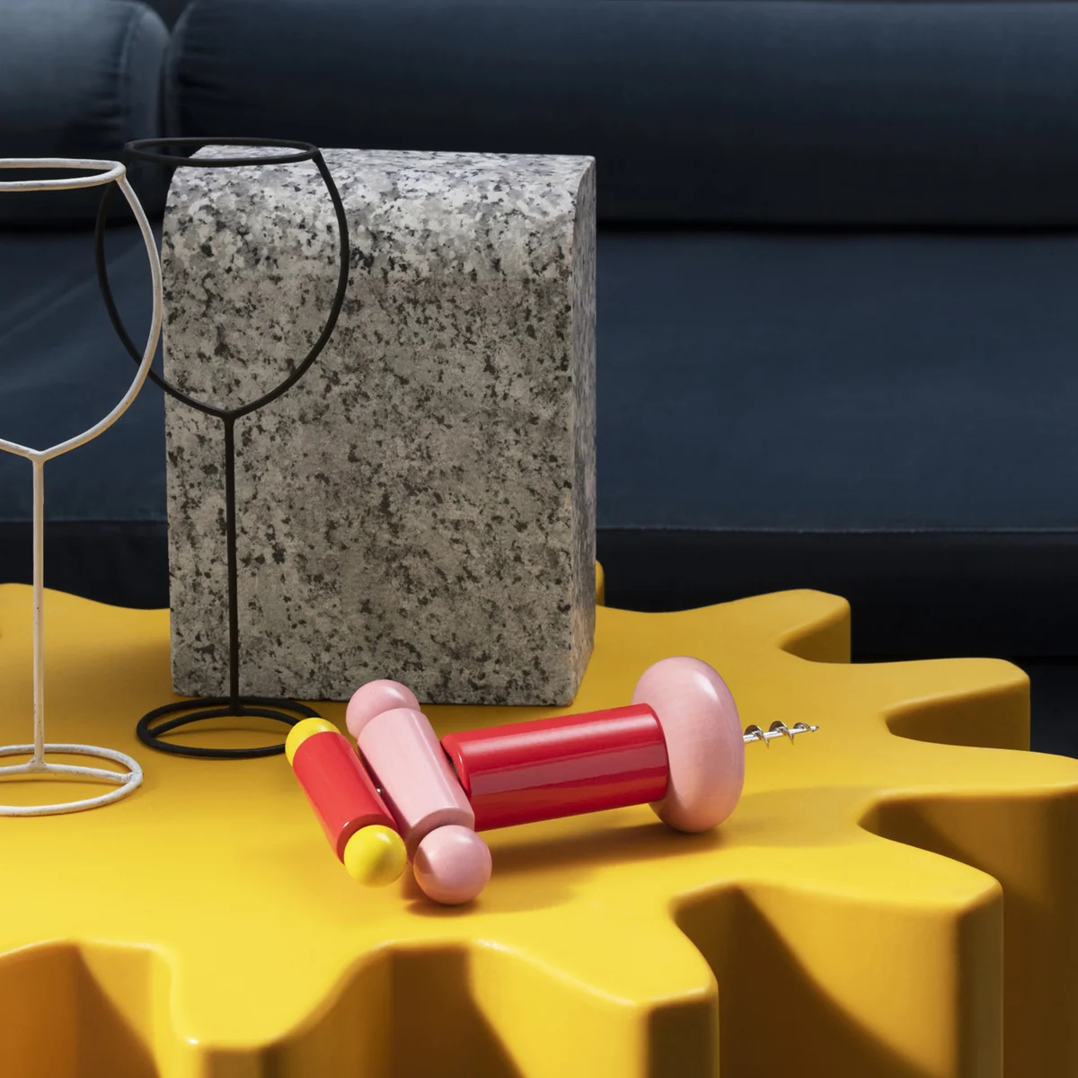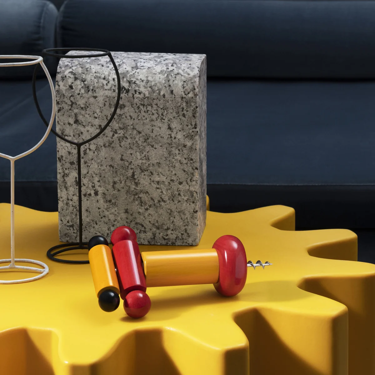 Kenmerkend voor de buitengewone ontwerpen van Ettore Sottsass, is deze kurkentrekker Twergi kurkentrekker in vrolijke kleuren en verschillende elementen met elkaar gecombineerd. De organische vormen vormen samen een ergonomisch ontwerp dat prettig in de hand ligt. Door zijn kleurrijke uiterlijk wordt de houten kurkentrekker ook na gebruik een speels accessoire op tafel.