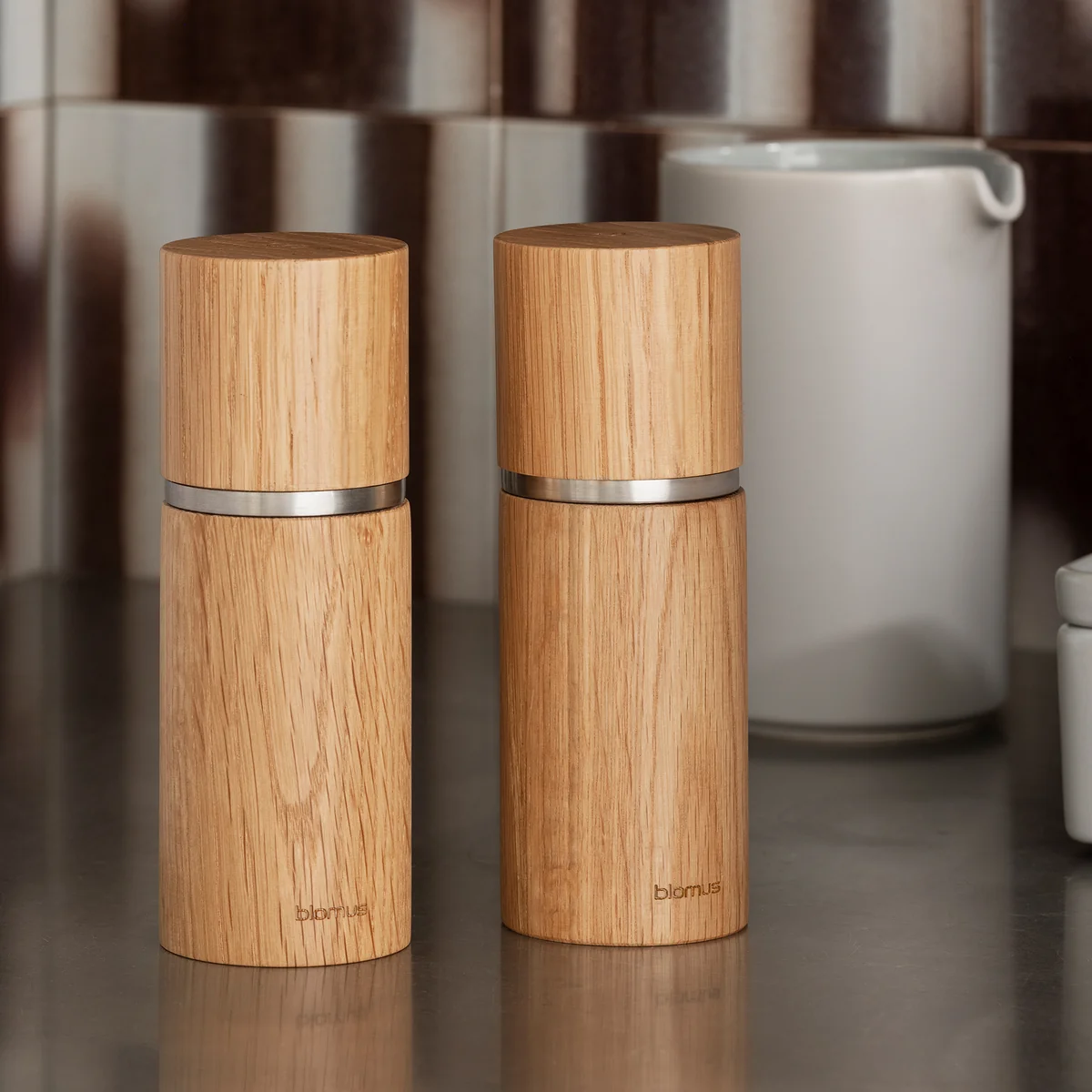 Voeg een vleugje Scandinavische helderheid toe aan je keuken en eettafel met de Pepe molenset van Blomus . Deze molens zijn gemaakt van FSC®-gecertificeerd, blank gelakt eikenhout en combineren een perfect ontwerp met duurzame kwaliteit. Het elegante duo maakt indruk met een traploos instelbare keramische molen die zorgt voor een gelijkmatige maling van zout en peper - precies naar jouw smaak.