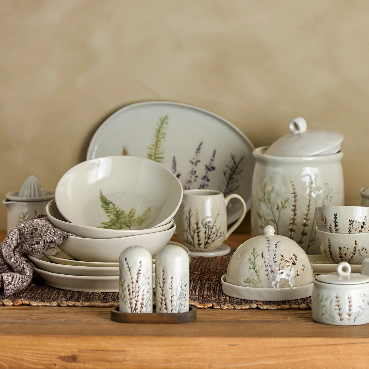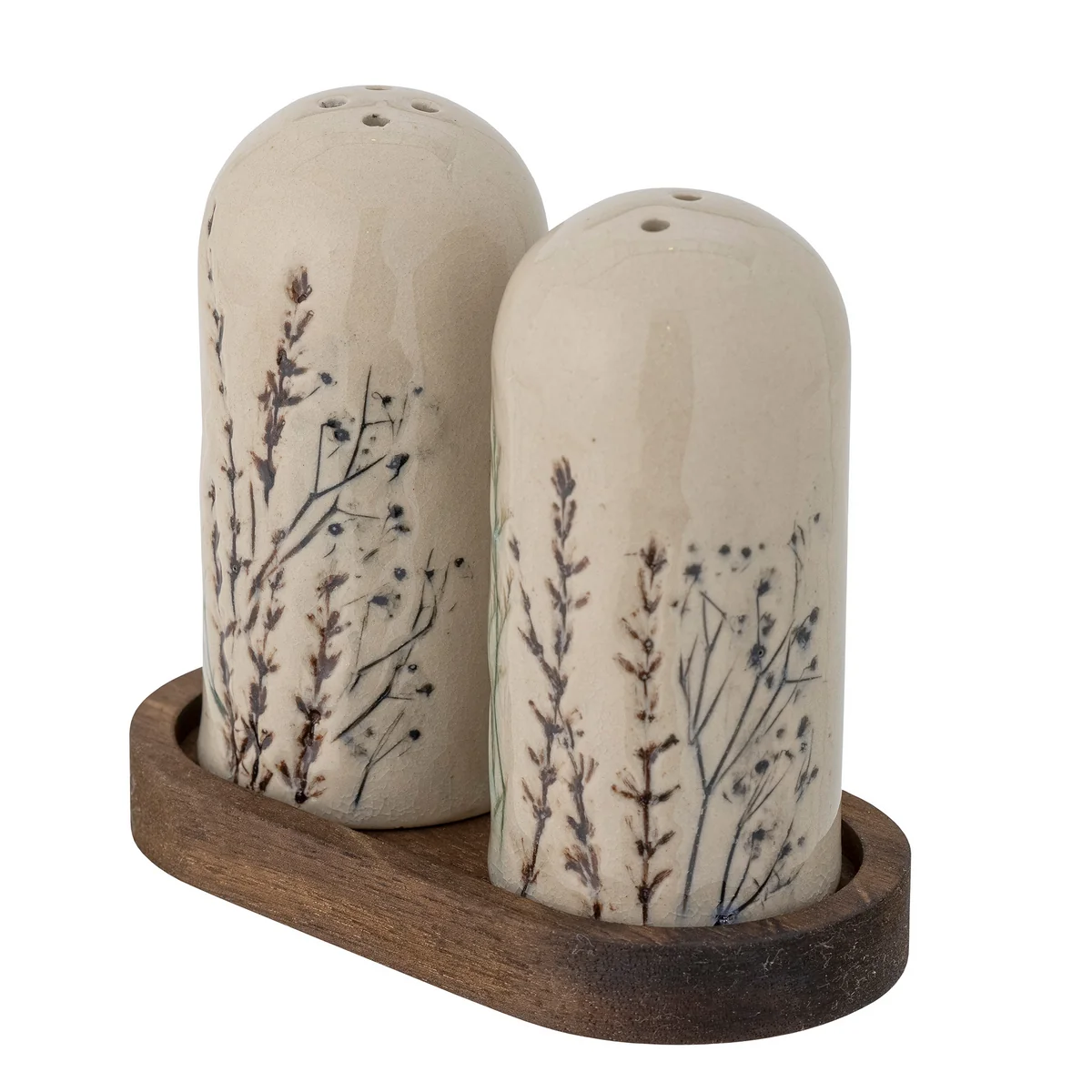 De Bea Salt & Pepper Shaker Set van Bloomingville is perfect voor op tafel. De set staat op een plankje van acaciahout. Het peper- en zoutstel is gemaakt van steengoed.