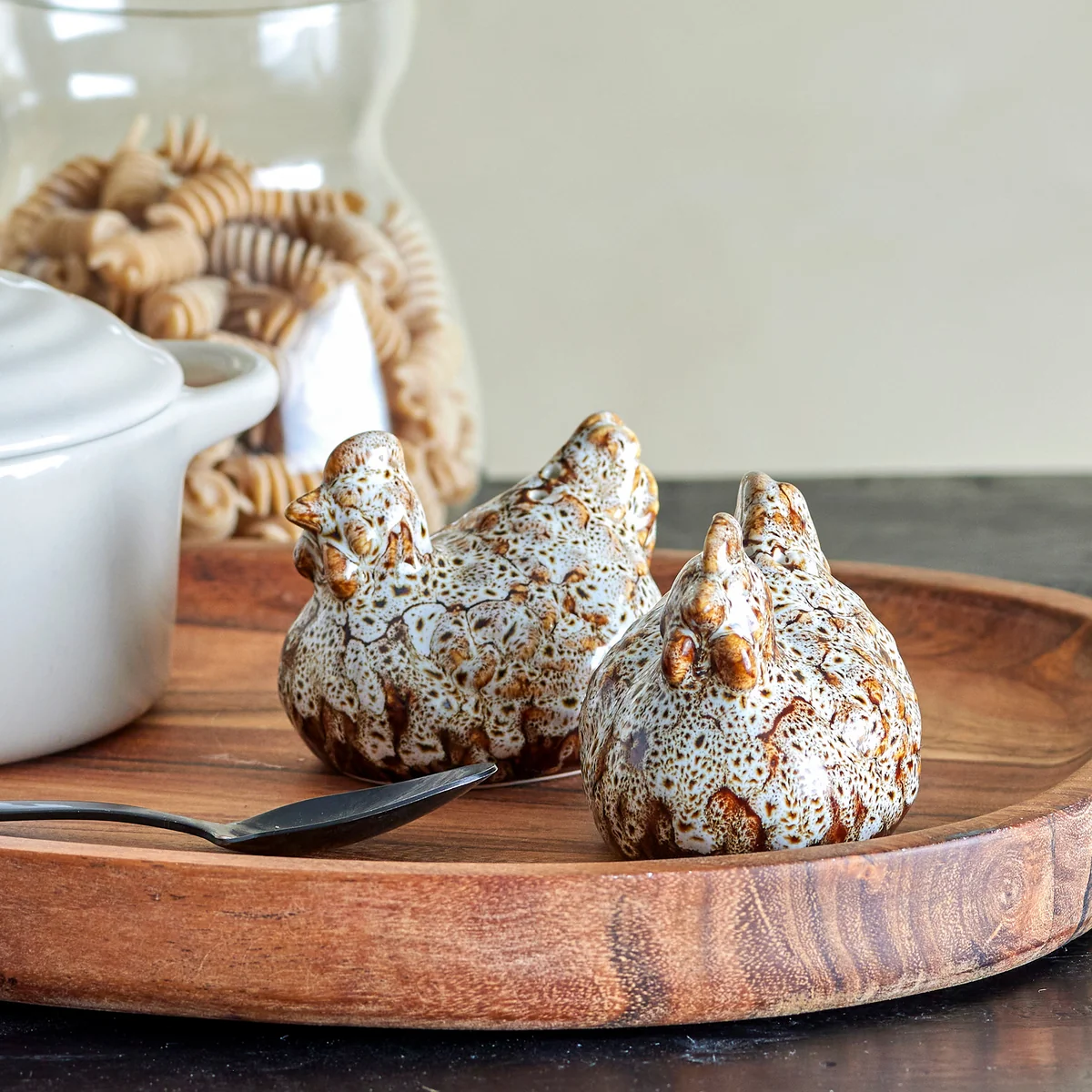 & Het Chicky peper- en zoutstel van Bloomingville creëert een gezellige sfeer aan tafel. De zout- en peperstrooiers hebben de vorm van een kip en zijn gemaakt van esthetisch steengoed. Ze worden gepresenteerd in een prachtig helder glazuur in harmonieuze kleuren. Door de aard van het glazuur kunnen er variaties in patronen en tinten zijn.