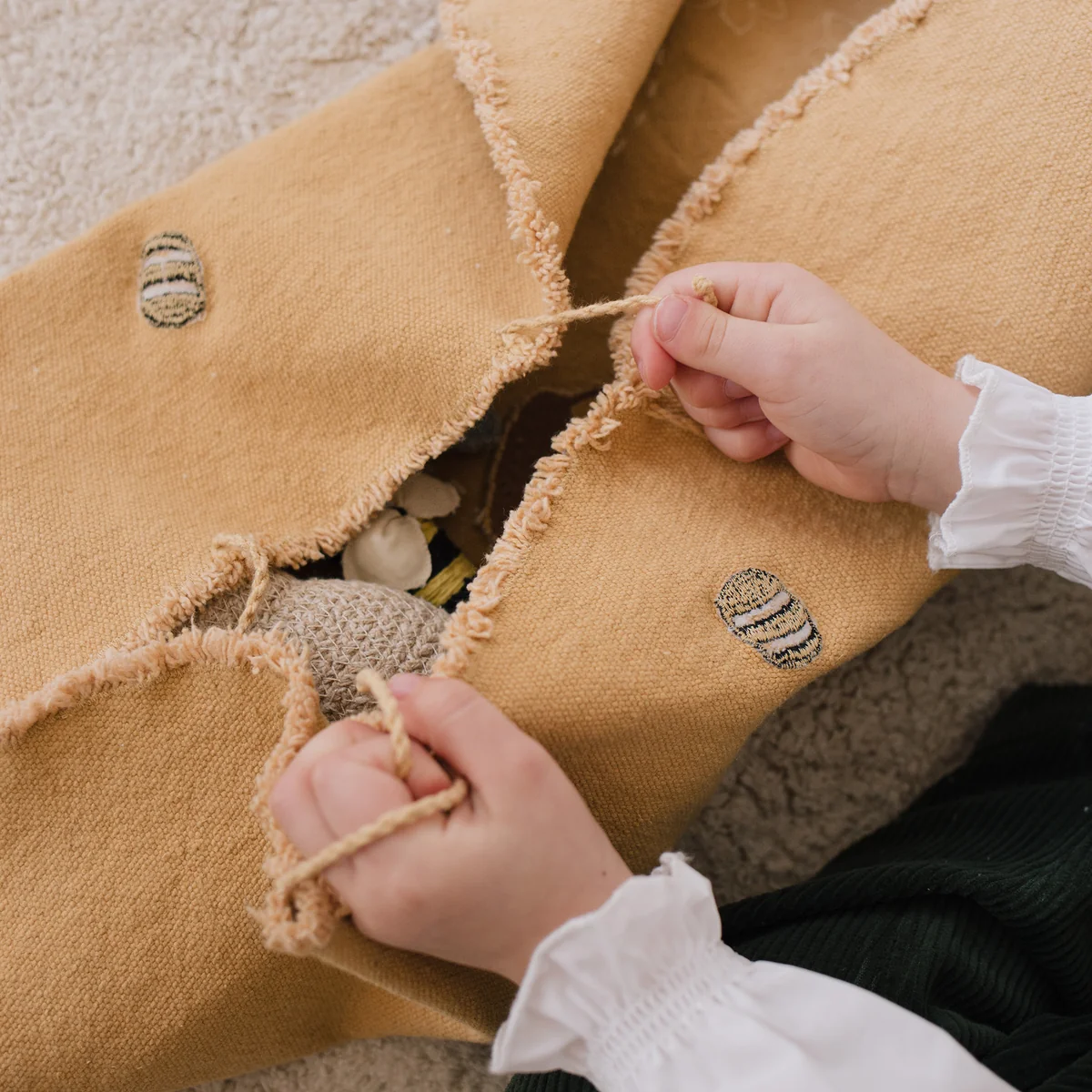 Met deze charmante interactieve speelset van Lorena Canals kun je geweldige avonturen beleven! Hij is gemaakt van katoenen stof en bestaat uit schattige speelfiguurtjes in verschillende maten. De bloemen zijn eenvoudig aan de basis vast te binden met de meegeleverde koordjes.