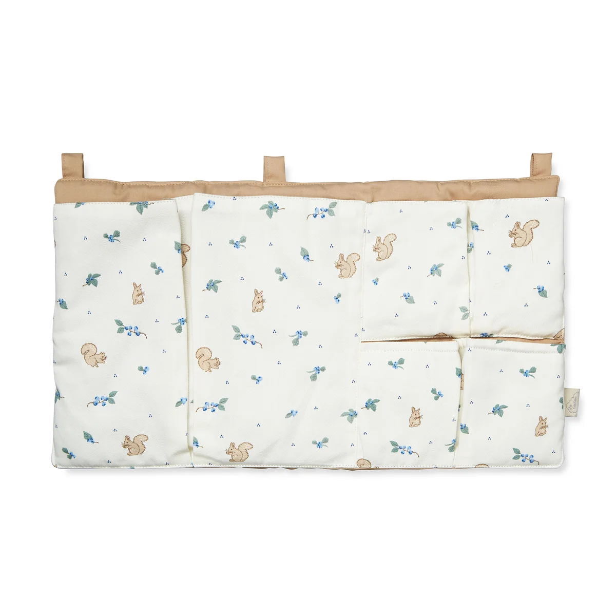 De bedtas van Cam Cam Copenhagen biedt een stijlvolle en praktische oplossing voor extra opbergruimte in de kinderkamer. Hij wordt eenvoudig bevestigd aan de wieg of het ledikant en houdt de boel op orde door ruimte te creëren voor belangrijke spulletjes zoals fopspenen, knuffeldoekjes of kleine boekjes. Dankzij het compacte formaat van ca. 42 × 24 cm past het perfect op ledikanten en kan het eenvoudig worden geïntegreerd in het ontwerp van de kamer.
