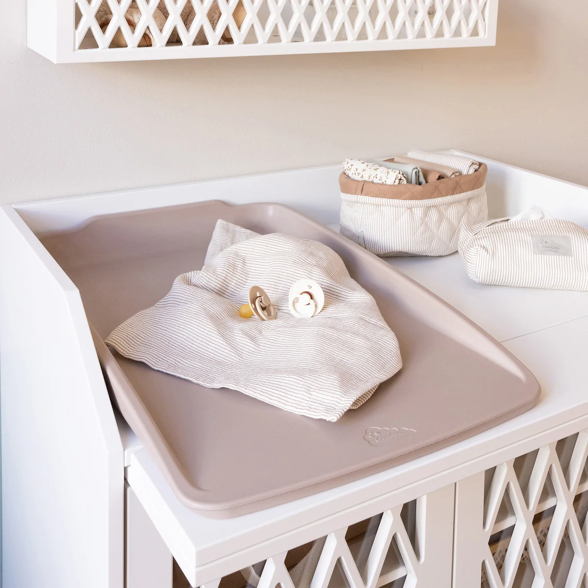 Met een duidelijk Scandinavisch ontwerp dat staat voor eenvoudige elegantie, past het aankleedkussen naadloos in elke moderne babykamer. De subtiele kleuren en het minimalistische ontwerp creëren een rustige en harmonieuze omgeving voor zowel ouders als baby's.