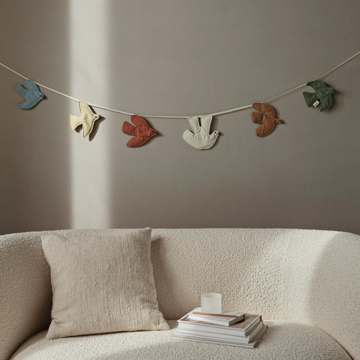 Of ze nu in de kinderkamer, speelkamer of woonkamer worden opgehangen, de Swif Bird de slinger voegt een vleugje grillige charme en persoonlijkheid toe aan de inrichting. Het neutrale kleurenpalet en het tijdloze ontwerp maken het een veelzijdige aanvulling op verschillende interieurstijlen, van modern tot eclectisch.
